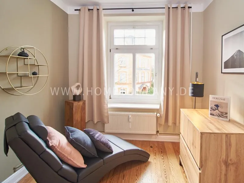 The 2-room flat is located in a quiet side street close to UKE and offers a large eat-in kitchen, living room and bedroom as well as a small working area for home office. The bedroom has a 1.60 m wide double bed and a relax area with a lounger.