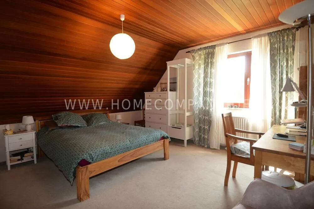 The house is high-quality and lovingly furnished, perfect for families or couples. The hobby room features an infrared sauna. An additional room in the basement is available for guests, au pairs, or a quiet office.