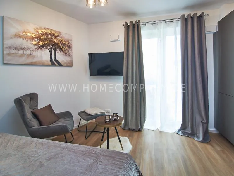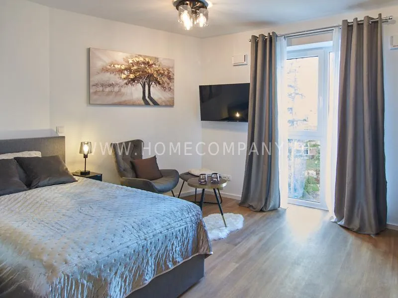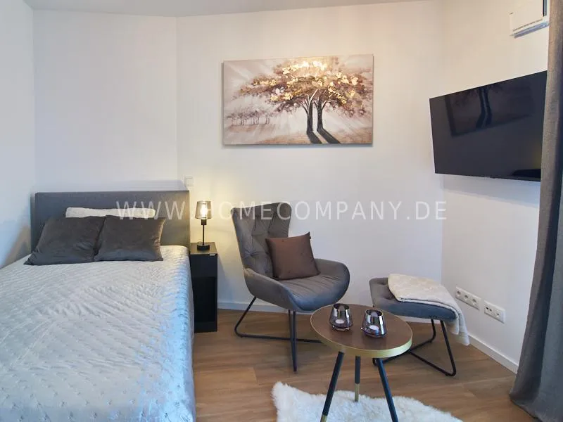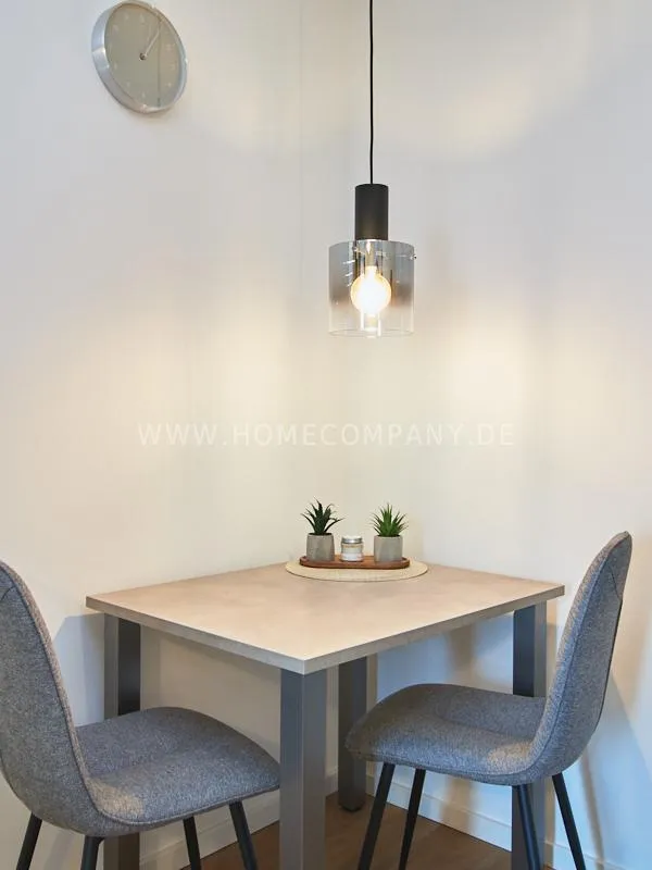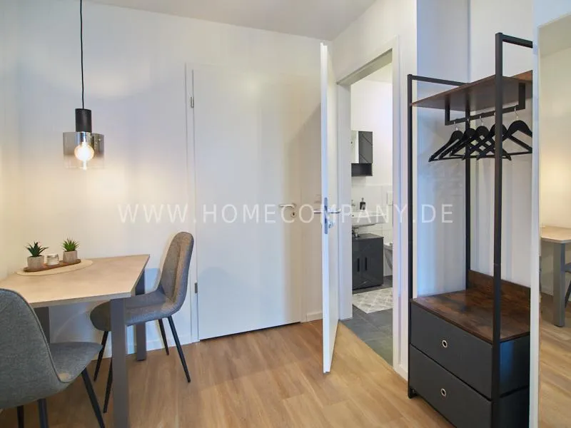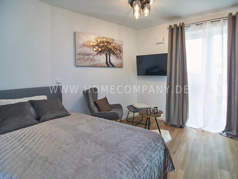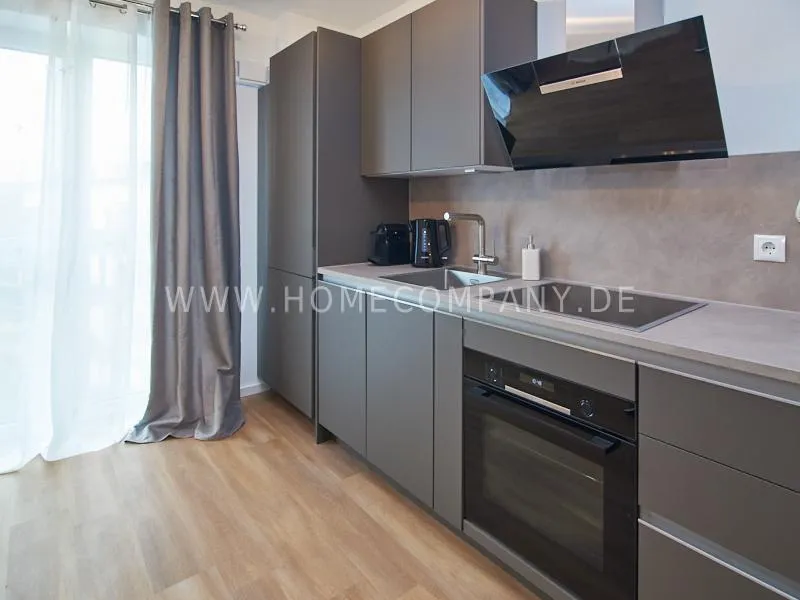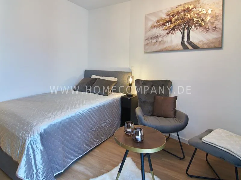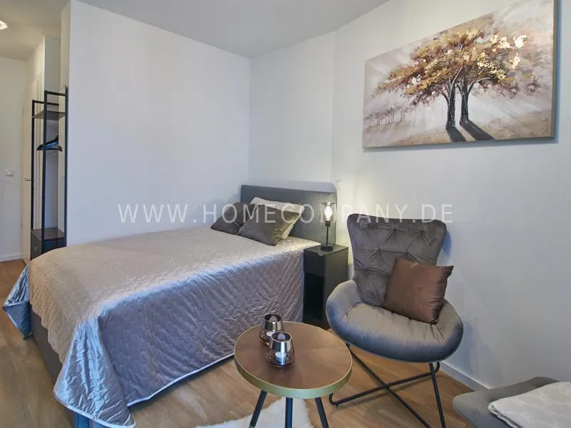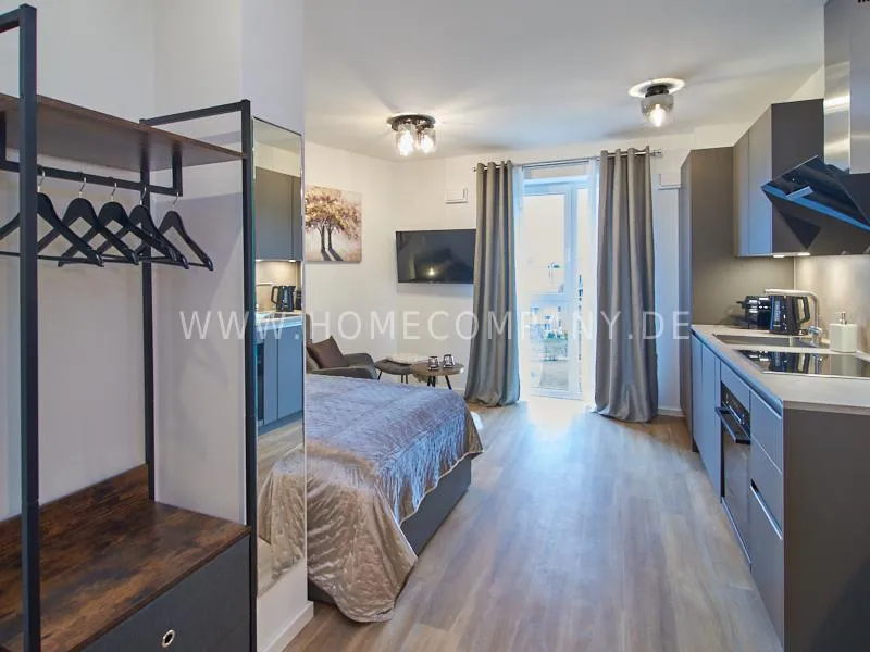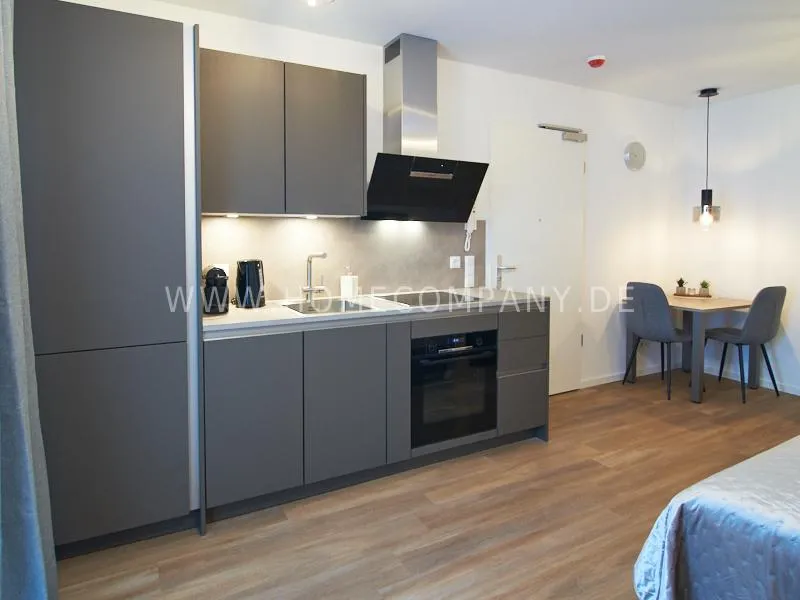The apartment, newly furnished and very well equipped in 09/2023, is located in a new building. Floor-to-ceiling windows, underfloor heating and a beautiful vinyl design floor create a comfortable living environment. The apartment is equipped with a high-quality open fitted kitchen in a pleasant color tone and branded appliances and a Caressi sink. In the living room there is a 1.20 wide bed, a comfortable sofa area with smart TV and a dining table. The cloakroom is in the entrance area.The washing machine is available in a separate storage room. There is also plenty of space on the shelves there. The very comfortable bathroom has an XXL shower and high-quality fittings.A variety of shopping opportunities for everyday needs, restaurants and small shops are in the immediate vicinity. The nearby Bramfelder See invites you to take relaxing walks after work.