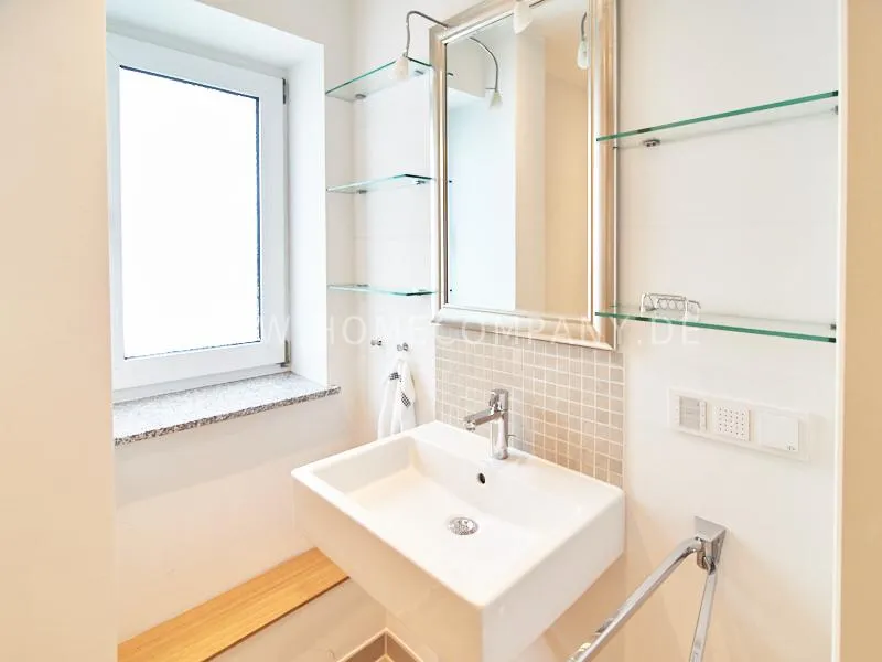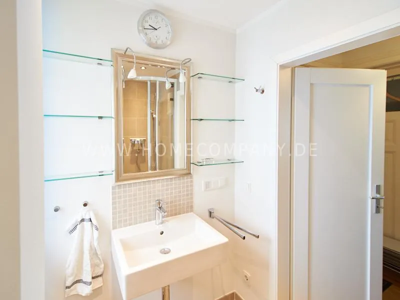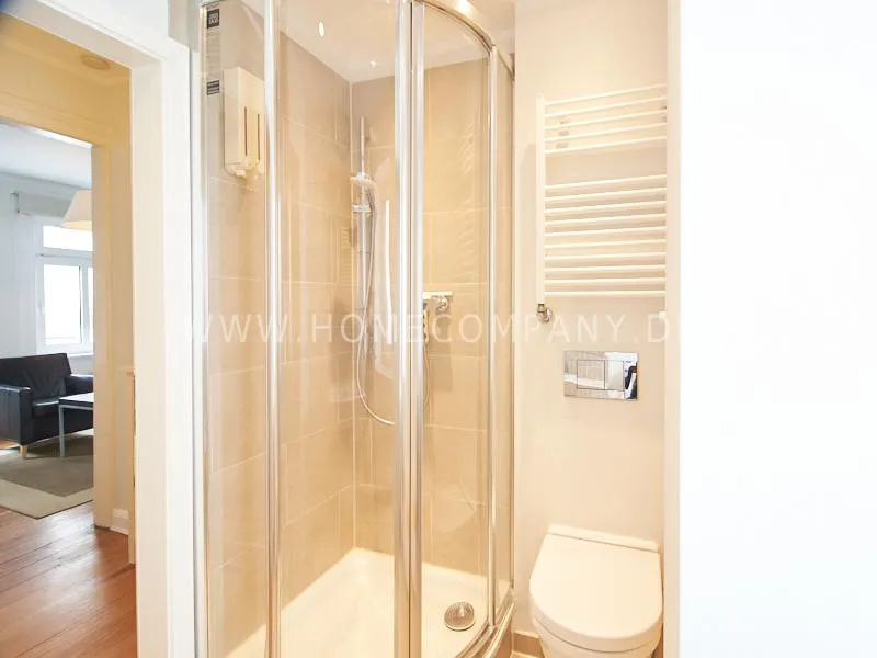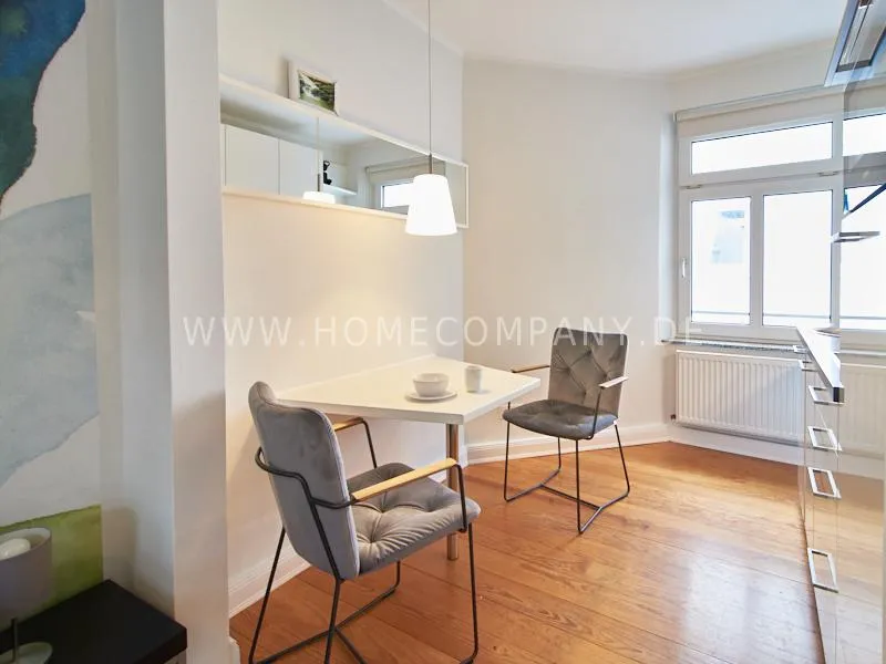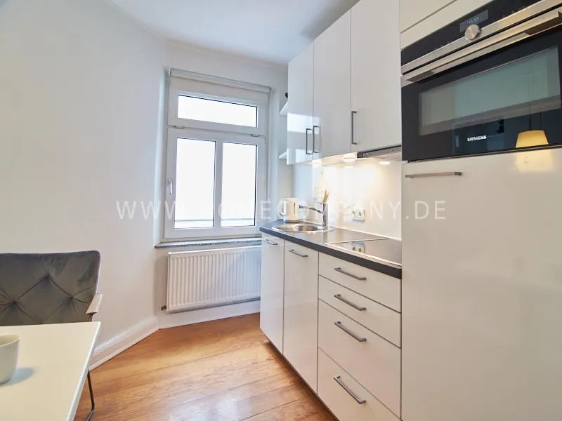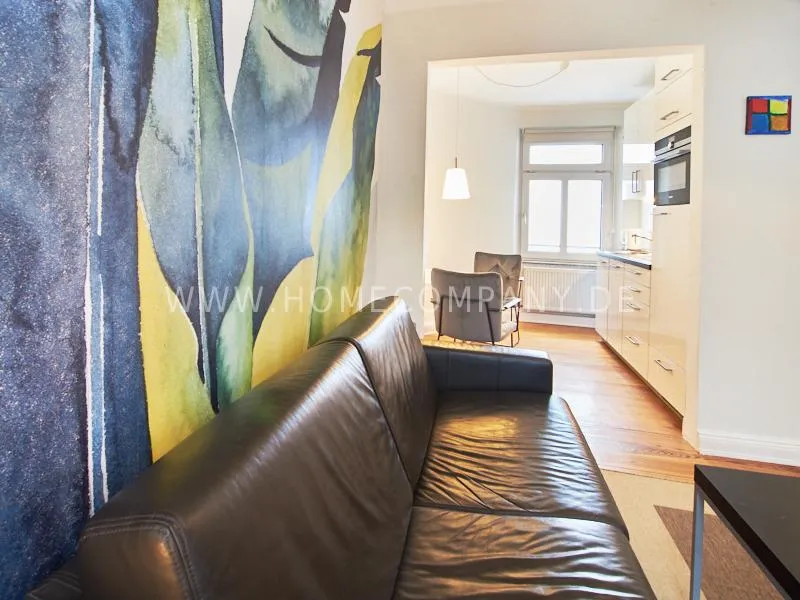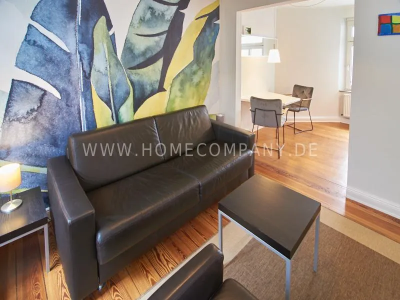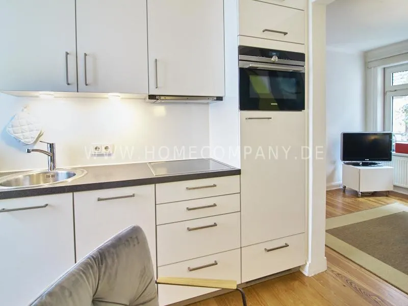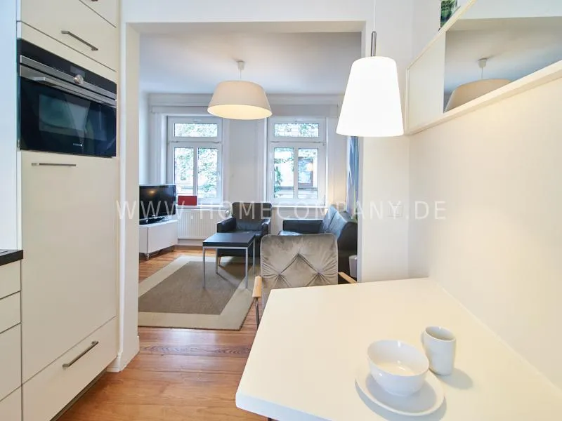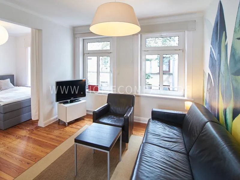Very quietly in the nice backyard located apartment with superior equipment. The apartment has five windows and is very bright The open kitchen is technically very well equipped, dishwasher, ceranstove and a combined oven / microwave is available. The dining area is designed for up to 3 people. The living area is equipped with an extendable leather sofa, armchairs and a high-quality flat-screen TV. The bedroom is equipped with a 1.40 m wide box-spring-bed. A built-in wardrobe provides plenty of space. The shower room is tastefully furnished. There is no washing machine in the apartment but a washing center very close by.