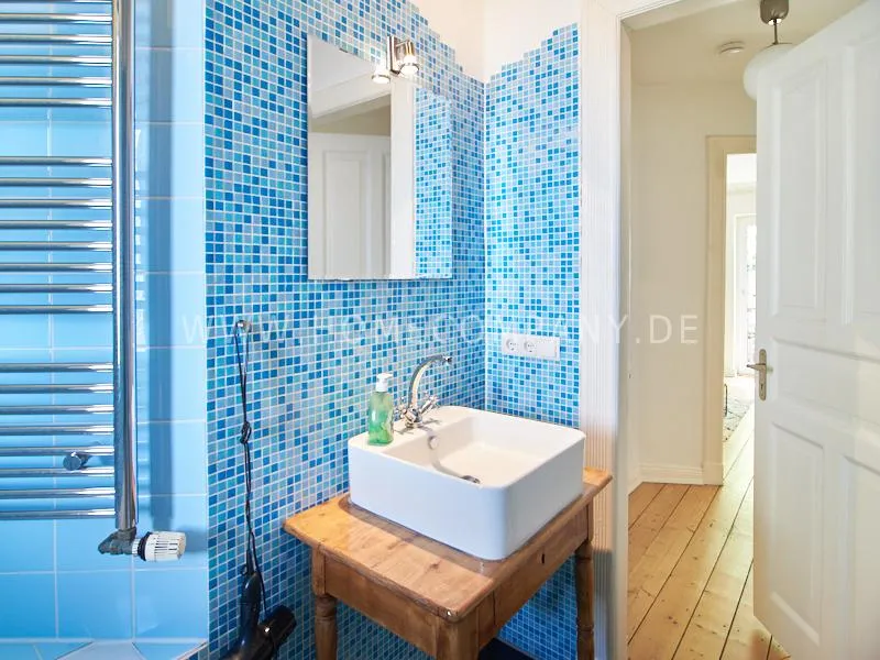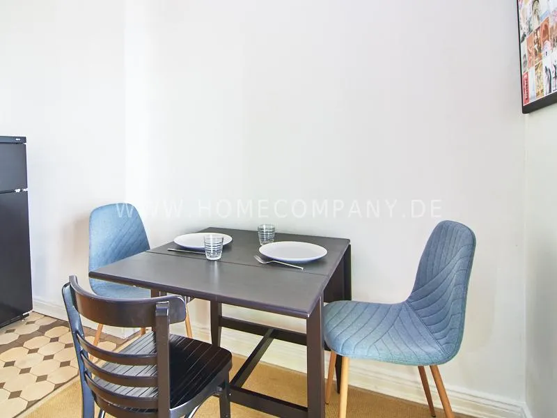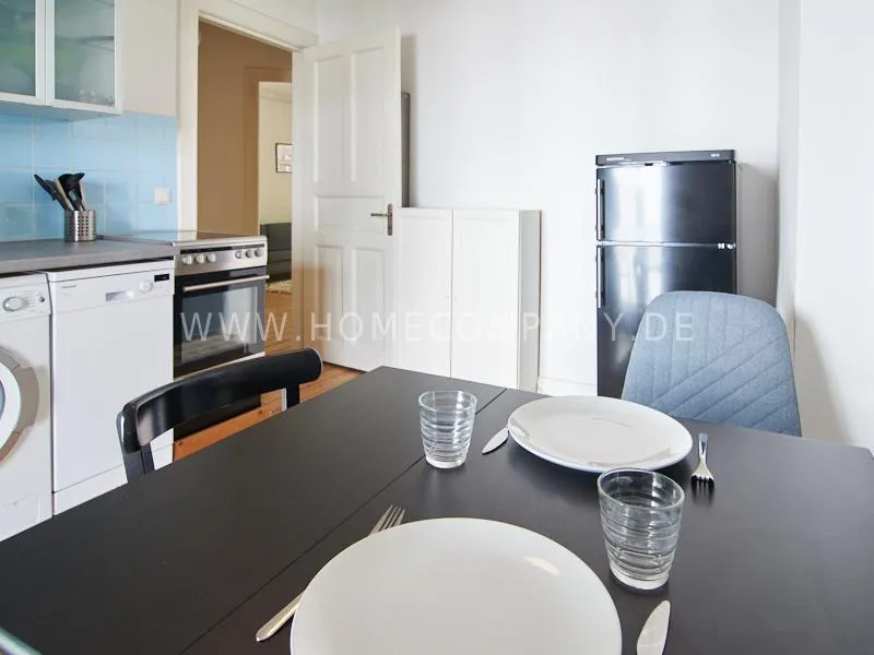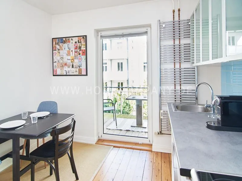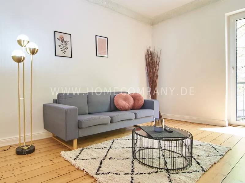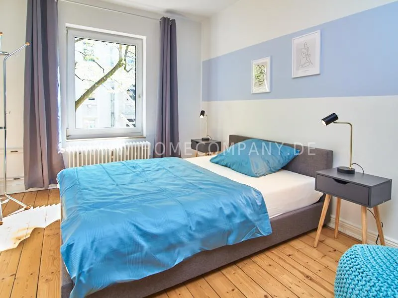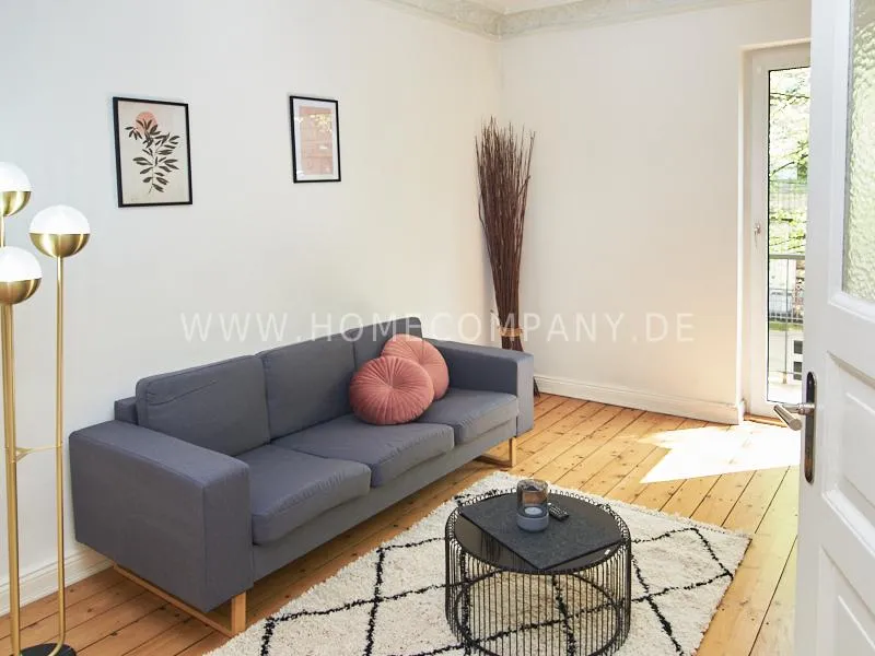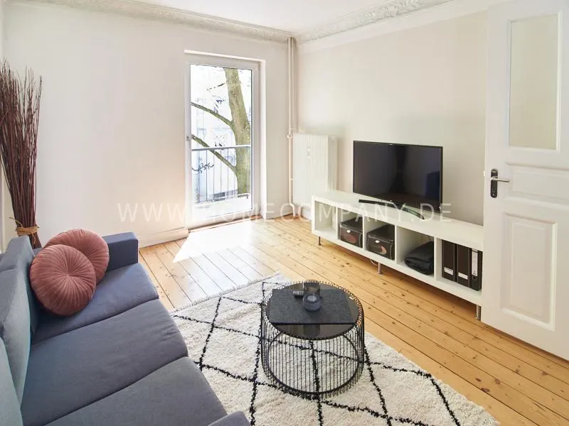 In 2022 renovated and newly furnished business apartment in a well-kept Art Nouveau house in popular Eimsbüttel. A large balcony facing the green backyard, which can be reached from the cosy, large eat-in kitchen, invites you to linger. The bathroom is decorated with tasteful blue mosaic tiles. The bedroom is furnished with a comfortable box spring bed. From the living room with beautiful stucco elements you can reach the second balcony.
