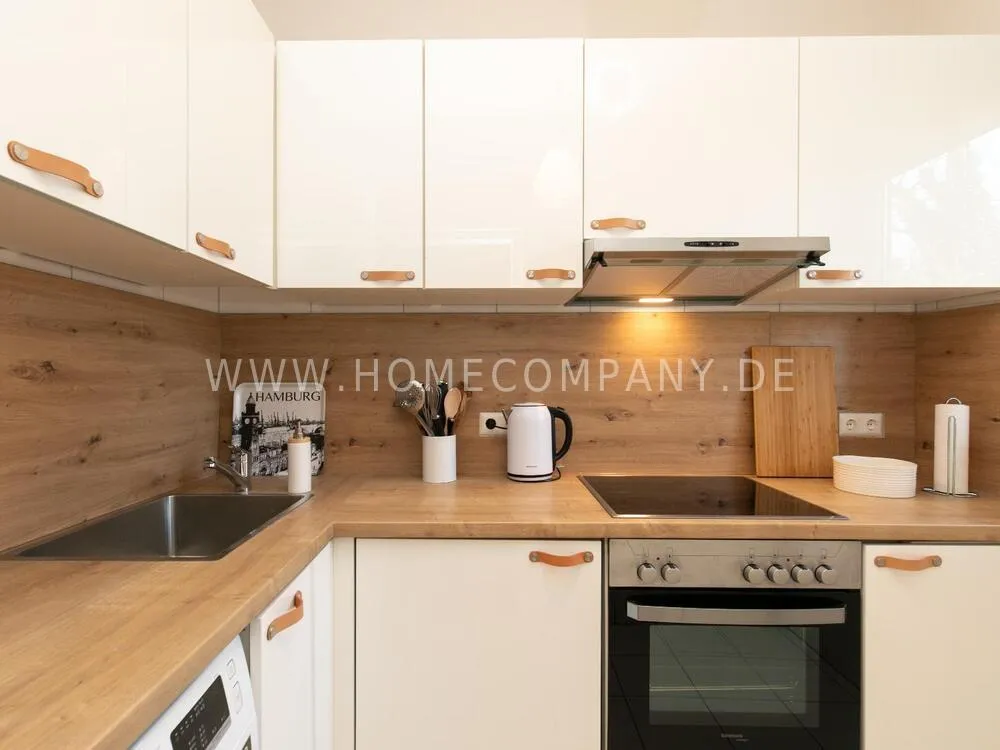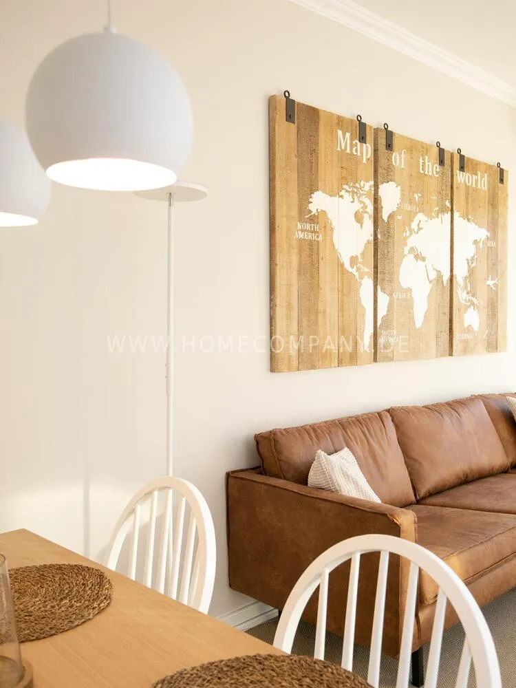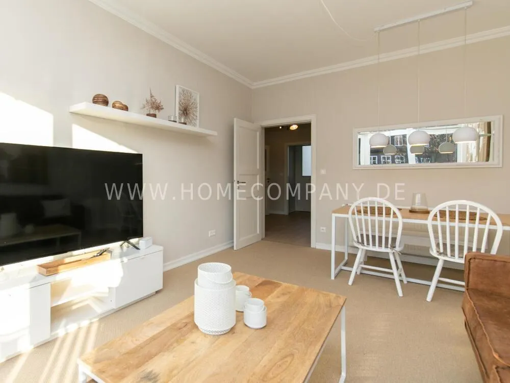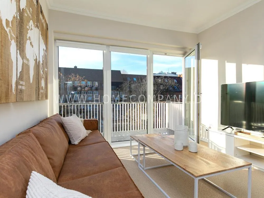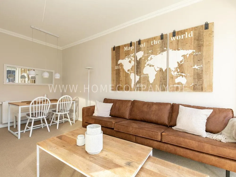 The apartment, located in a prime location in Harvestehude, is kept in subtle light natural tones in Scandinavian style. There is a brown suede sofa and comfortably dimensioned smart TV as well as a dining table in the living room. A bench and two chairs can accommodate up to four people. The bedroom is furnished with a 1.60 m wide bed. There is also a desk in the spacious hall area and a washer-dryer in the apartment. A special highlight are the two balconies, one of them is south-facing. The other balcony is lit by the morning sun and faces the street.
