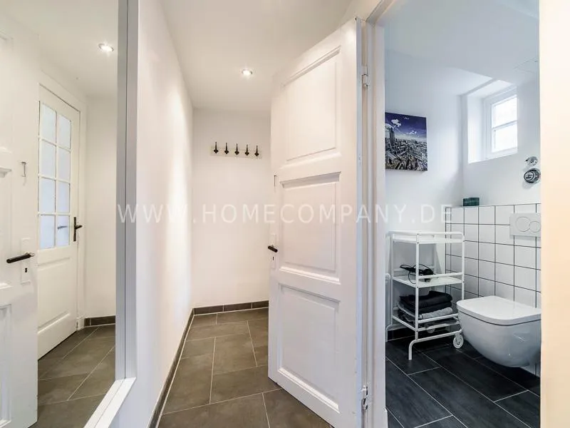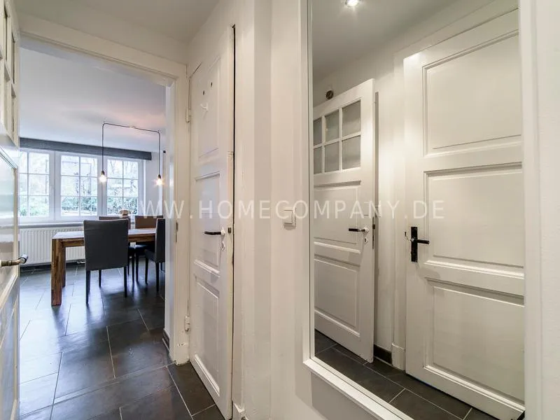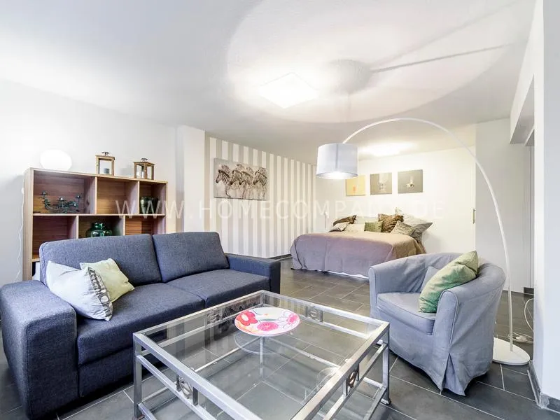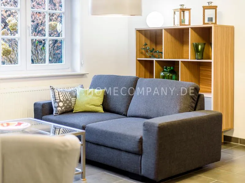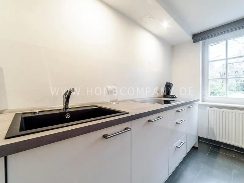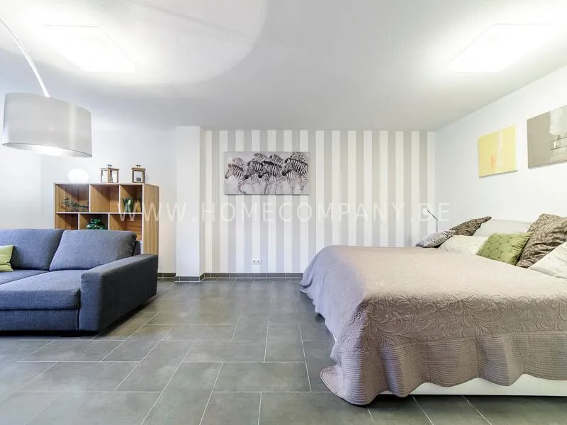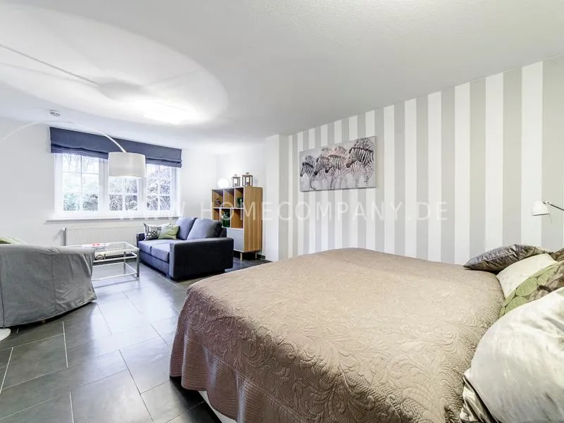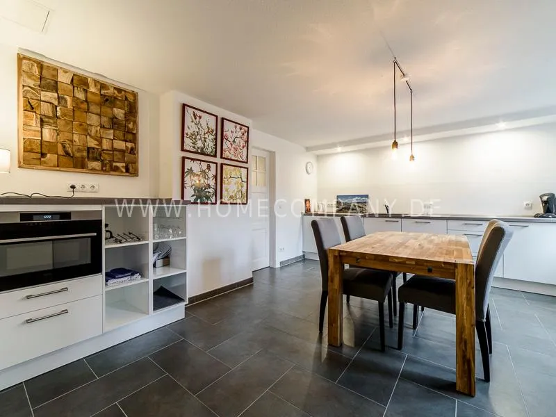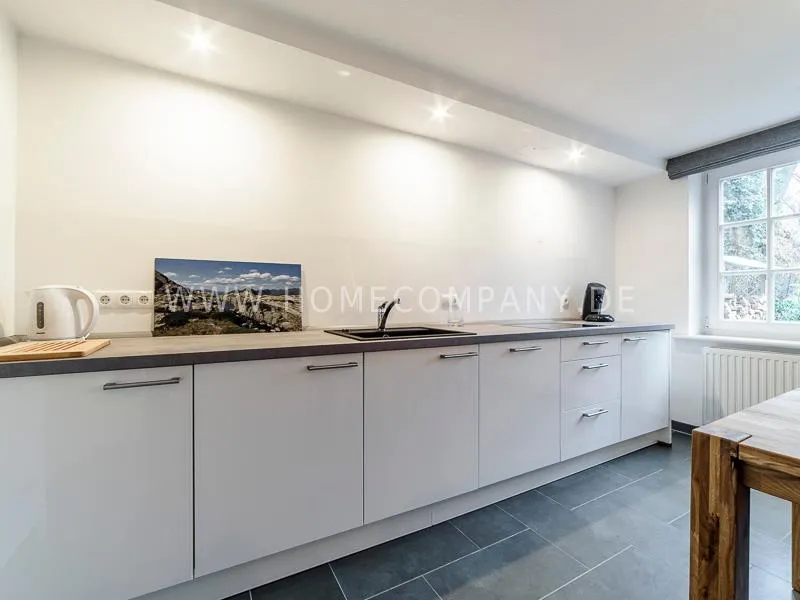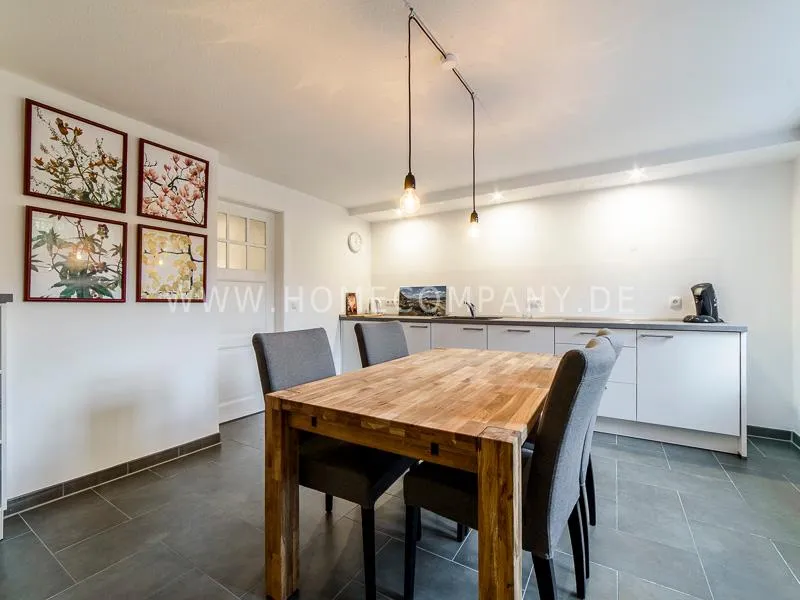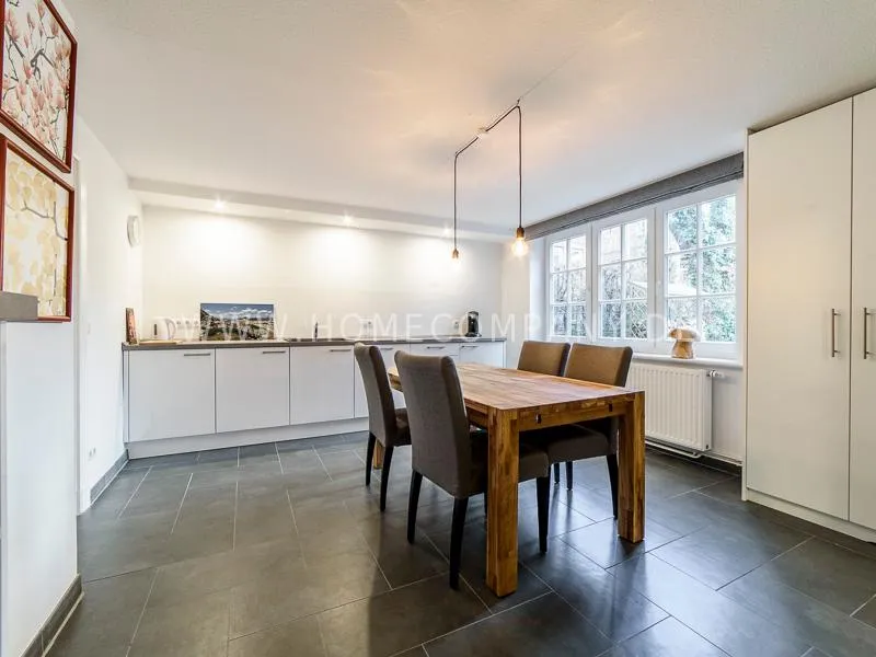 Beautifully located flat on the ground floor of an old brick villa. The floor plan is open and designed like a loft. In addition to the living and sleeping area is a very large kitchen with a table for 4 people available. From the living area, as well as from the kitchen you look into the idyllic garden. The street space offers sufficient parking spaces for cars.