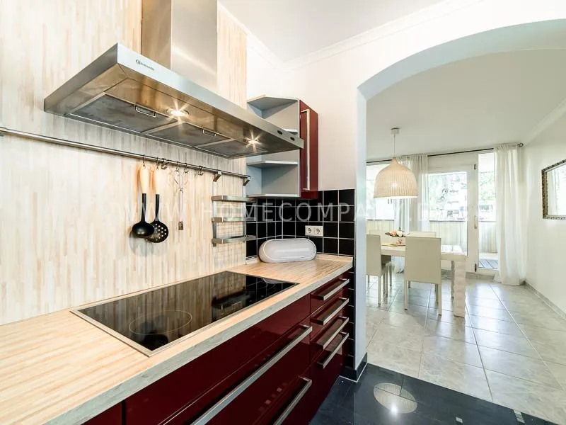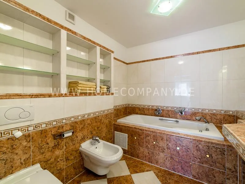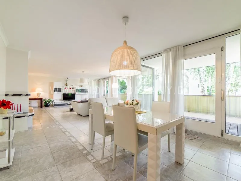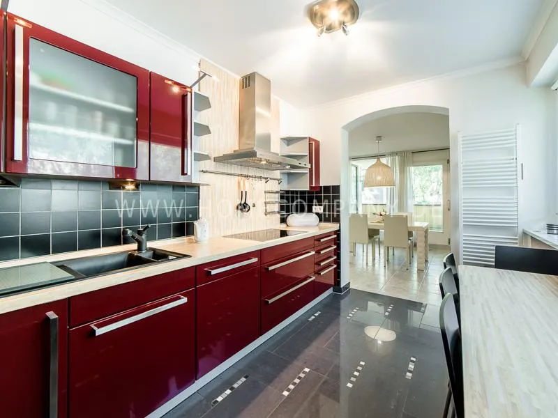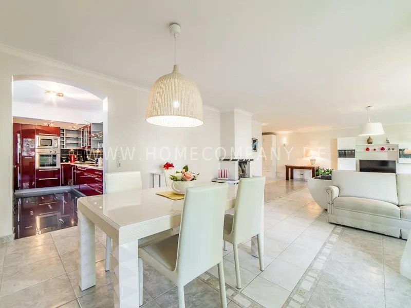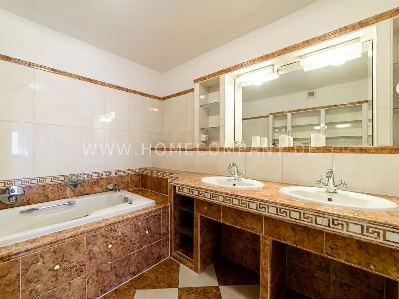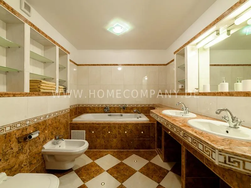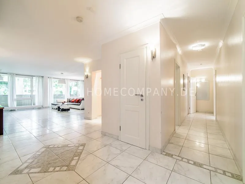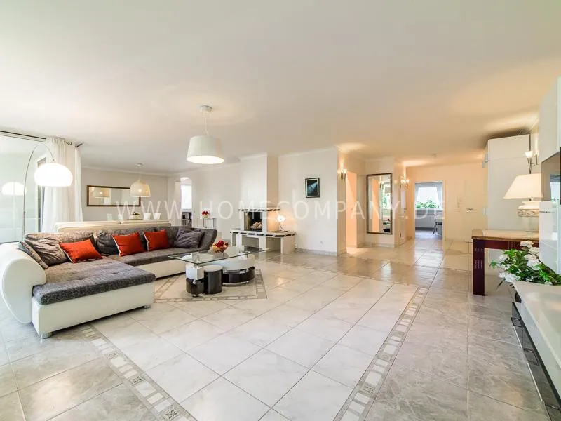 Dream apartment in the most beautiful residential area of Hamburg Elbvororte, the historic neighborhood of Blankenese distinguished by its river Elbe, its charming town center and its excellent infrastructure. The apartment has a spacious floor plan living room windows overlooking the lower 23 sqm balcony. The floor is covered with high quality Italian V + B tiles. In both bathrooms the floors are also equipped with LEDs in the floor luxuriously appointed bathrooms, the kitchen and the bedroom floor heating provides comfortable warmth. One of the bathrooms has a bath with jacuzzi with water inlet and wall-hung bidet, WC and wash basin set into the sink and a designer radiator. In the bathroom blue, floor-dimmable LEDs are integrated. The room ventilation can be controlled manually. The flamboyant burgundy lacquered kitchen has all brand appliances provided. All rooms are equipped with sockets for TV / Radio, ISDN and with dimmers equipped. The living room also has a Dolby Surround syste. The property is located close to the Elbwanderwege, the Süllbergs and the Forest Park Marienhöhe and Falkensteiner forest. Very convenient transport due to the 8-minute walk away, train station and several bus lines Blankenese. The location is very child friendly, with a diverse selection of schools, colleges and nurseries in the area. The International School can be reached in just 10 minutes.