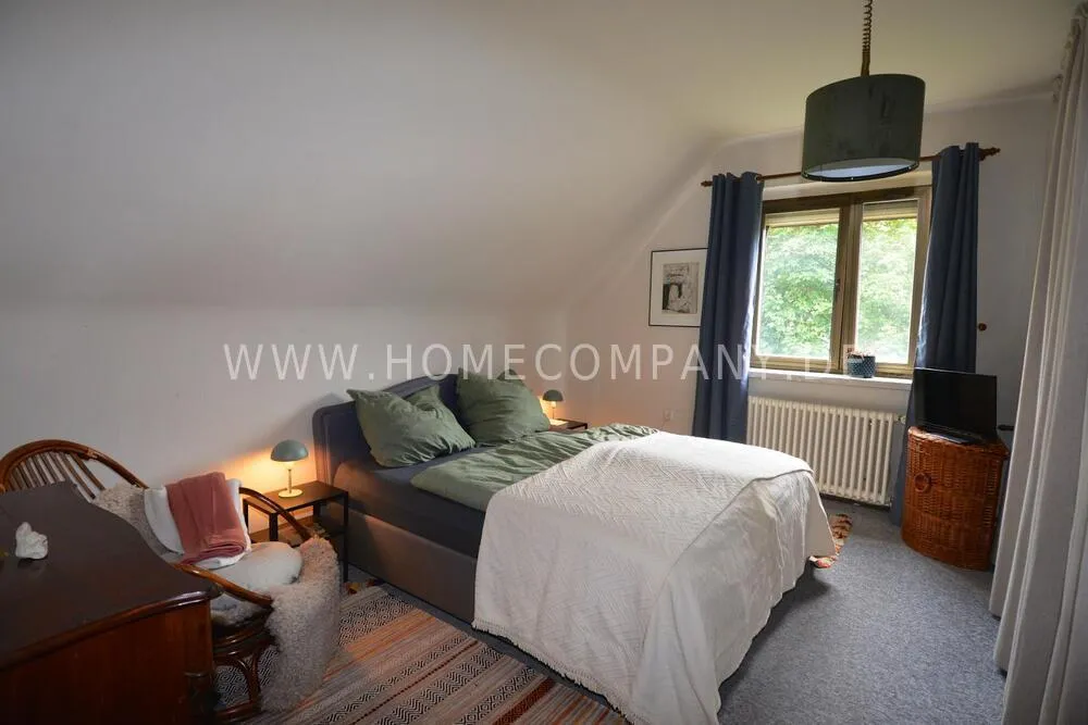 We offer a cozy and fully furnished single-family home/semi-detached house situated on a quiet corner lot in one of the most desirable areas of Babelsberg. The house features a spacious garden, providing ample space for relaxation and enjoyment.