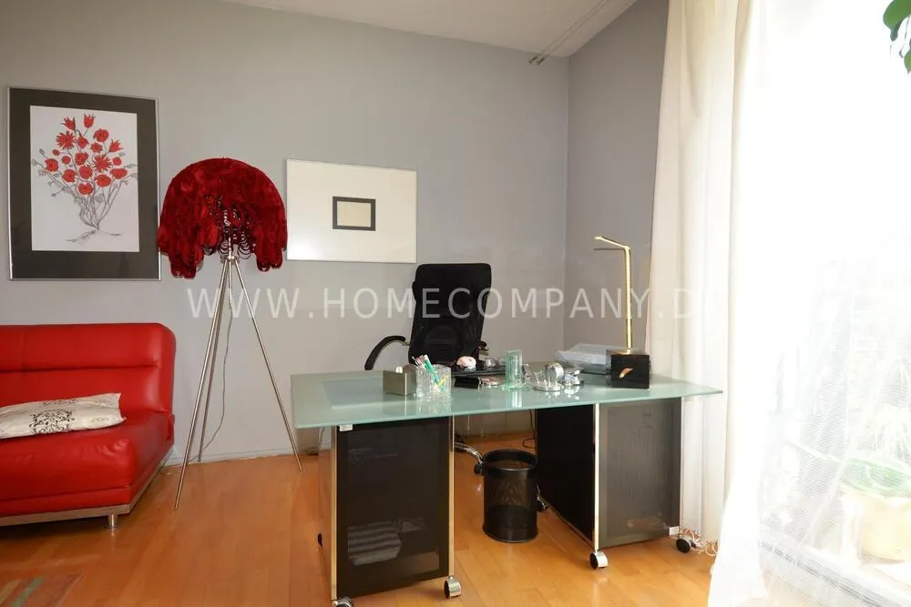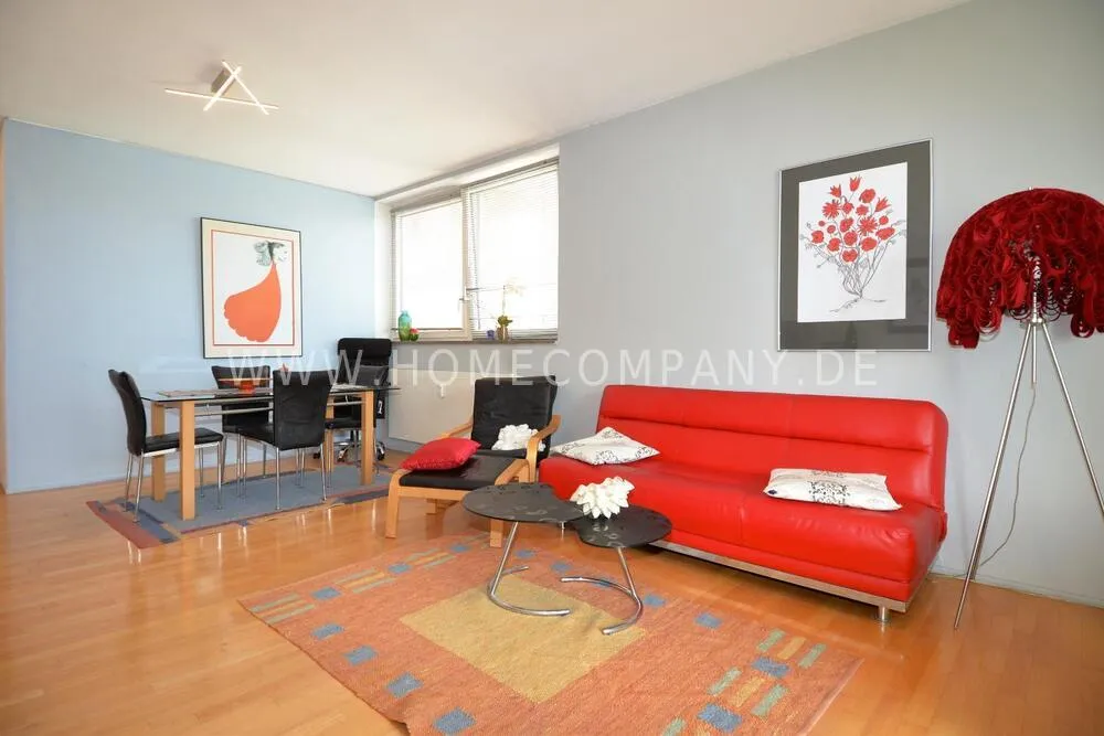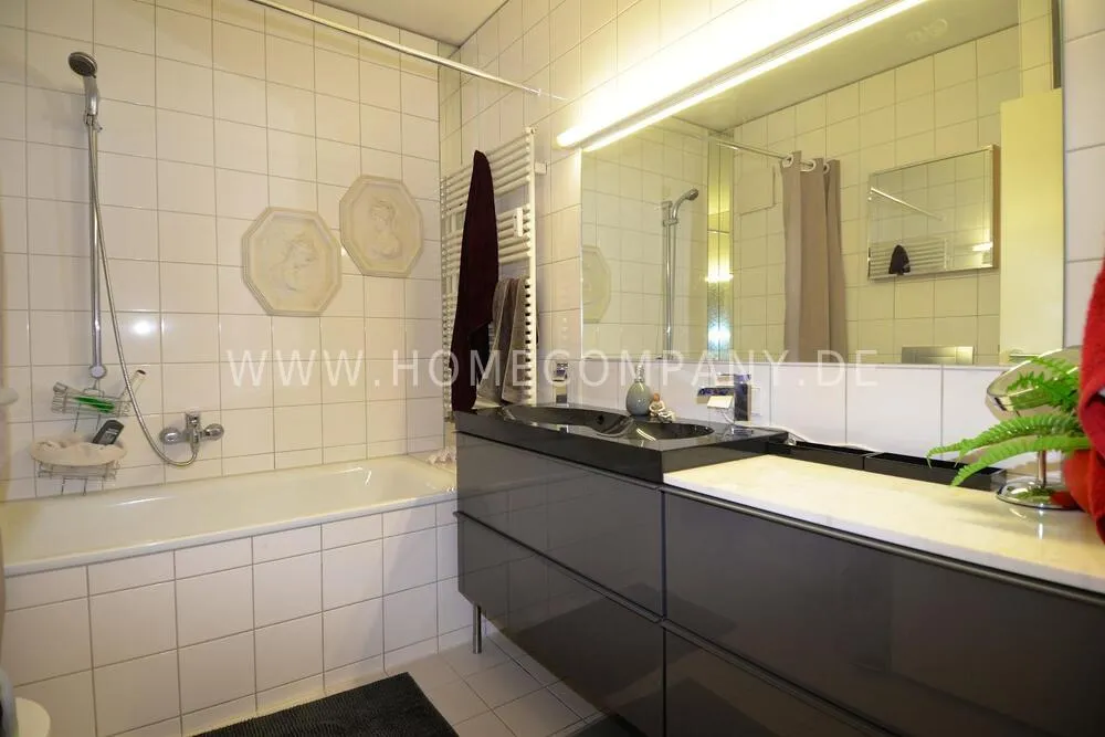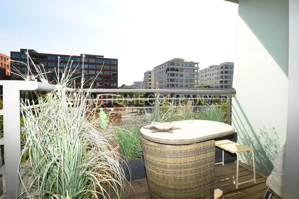 Modern apartment built by star architects in the center of Potsdamer Platz is in the immediate vicinity of the arcades, the new Leipziger Platz center and the ministries and sights in Berlin-Mitte. It has a balcony on the 4th floor and has a view of the TV tower and Holmes Place Potsdamer Platz opposite. The house was built in the late 1990s and has high-quality parquet. Good fully equipped kitchen, two sinks in the spacious bathroom, washing machine and dryer, high-quality bed. Living room with workplace.