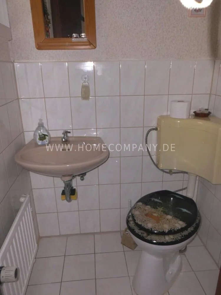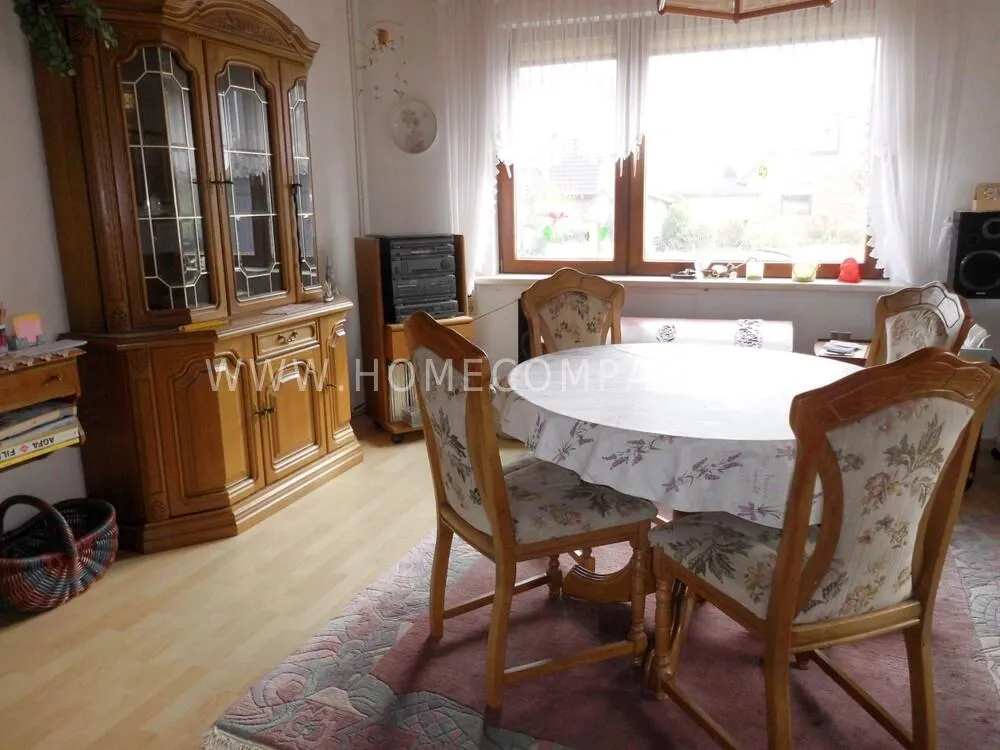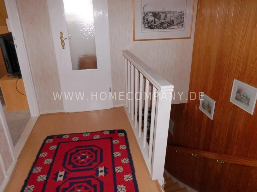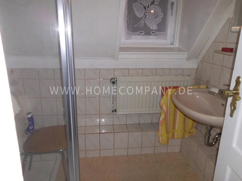 The apartment is located in Flintbek in the Voorde district in a very quiet location, approx. 10 kilometers from the center of the state capital Kiel. There is a parking space on the property. Bedroom, bathroom with shower and a toilet are on the first floor, living and dining room, kitchen and a second toilet on the ground floor.