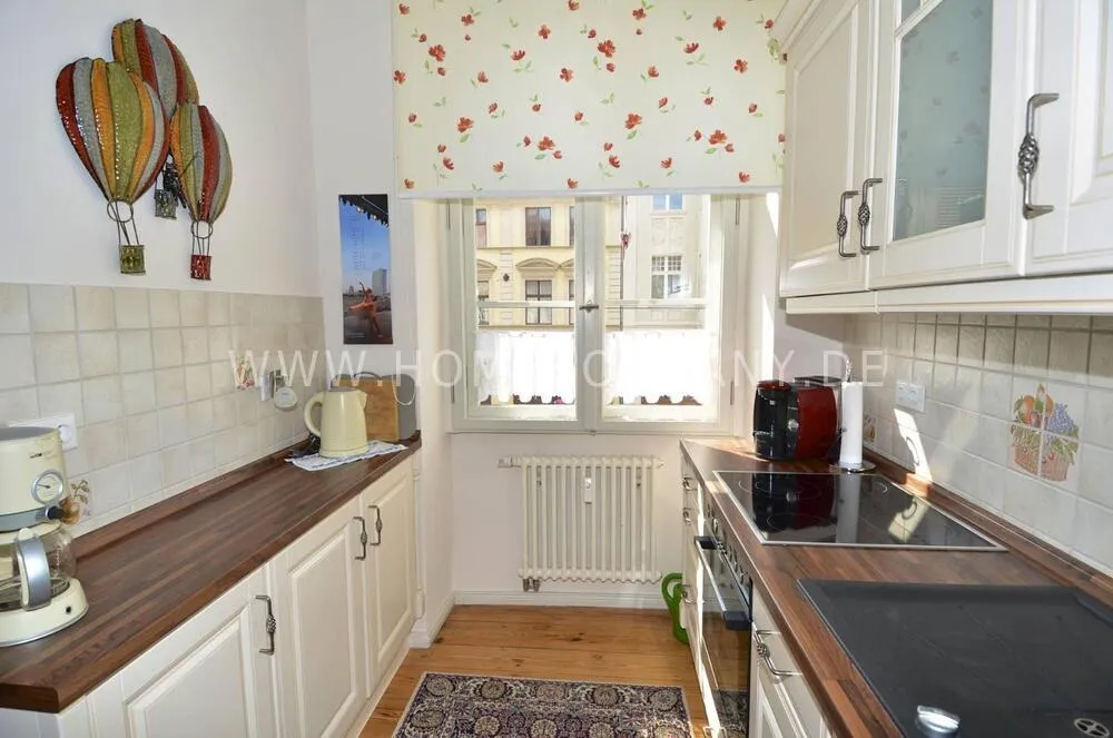 This tastefully furnished 1 bedroom apartment is located in a quiet, charming building in thevery center of beautiful Potsdam. The apartment offers authentic hard wood floors, Italian furniture, a lot of pictures, a quality fit-in kitchen with a dishwasher.