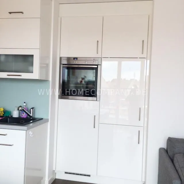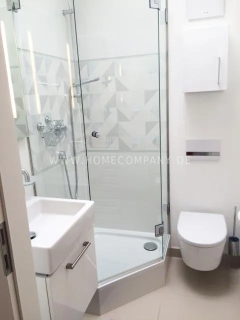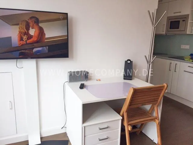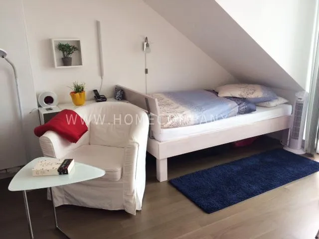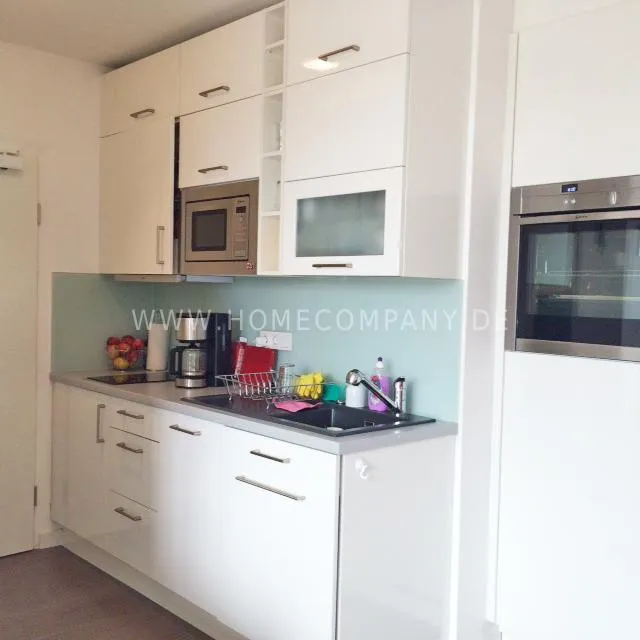 Great newly furnished 1-room apartment with balcony near Muenchner Freiheit. Absolute central location, yet quietly located towards the inner courtyard. 4th floor with lift. The living room/bedroom has a double bed (1.5 x 2 m), which is housed discreetly in a modern white wall unit, a comfortable sofa, an armchair as well as a small dining/workplace. The modern white open kitchen is equipped with everything you need daily (ceramic hob, dishwasher, microwave, etc.). White bathroom with glass shower and daylight. Internet available. A combination washing machine/tryer is also available in the apartment. Flooring: beautiful dark parquet flooring.