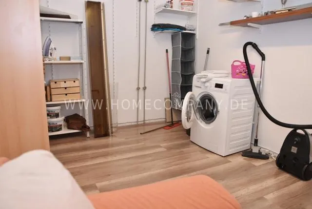 Storage room with washing machine.