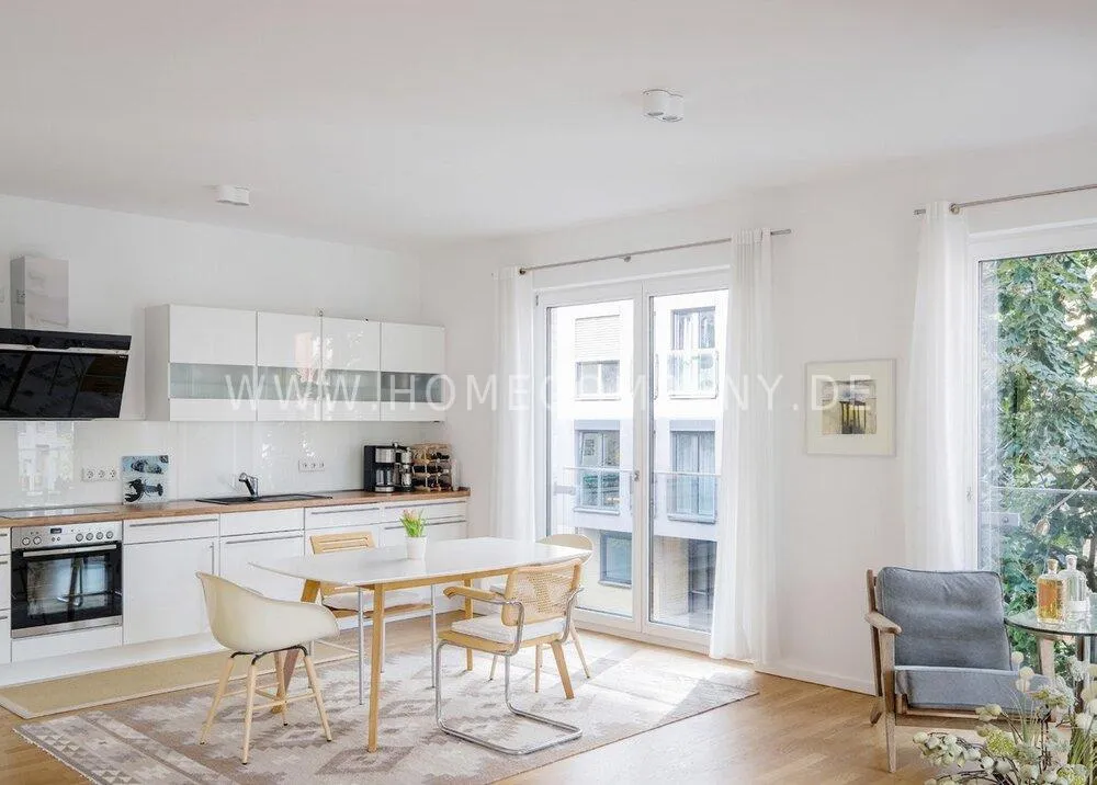 From the light-filled living room, you access the northwest-facing balcony, which offers a charming view of the adjacent Luisenstädtischer Kirchpark.