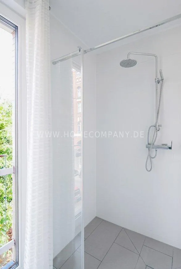 High-quality parquet flooring by Bauwerk lends the rooms a warm ambiance and timeless elegance. The naturally lit bathroom features a walk-in shower as well as a bathtub and impresses with its top-class fittings. Floor-to-ceiling windows with triple glazing ensure peace and quiet while creating a bright and airy living space.