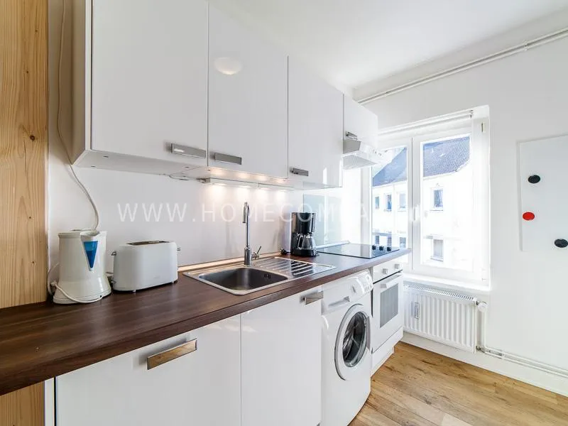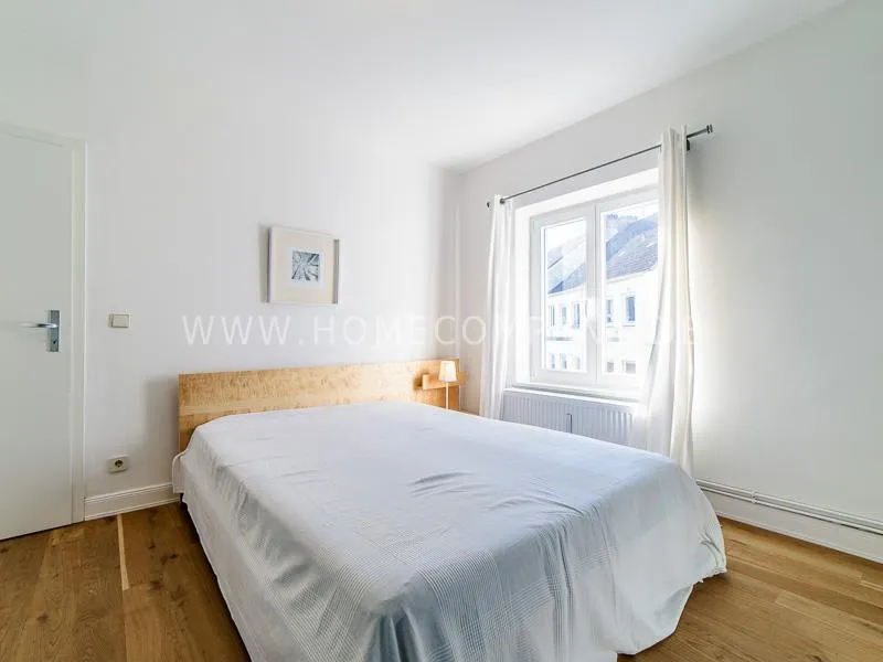 Centrally located, completely furnished apartment. The apartment has an open plan kitchen with small dining area and a living room equipped with a 1.60 and a large bedroom.