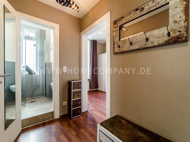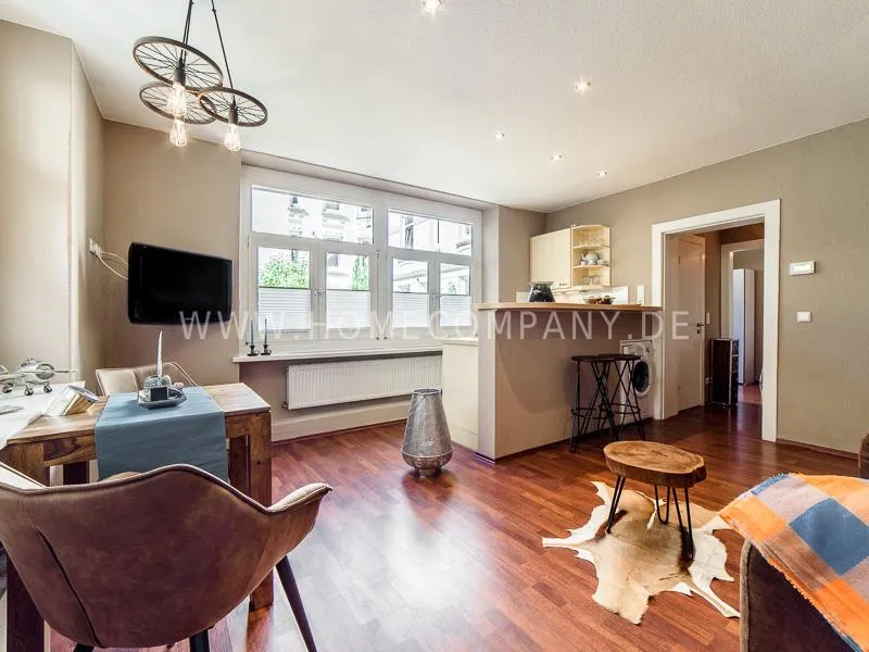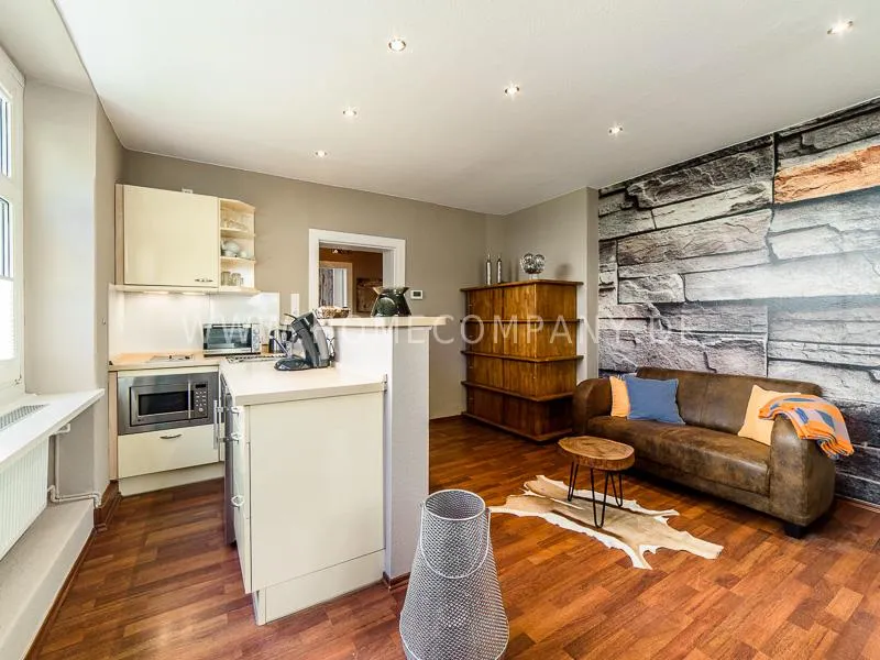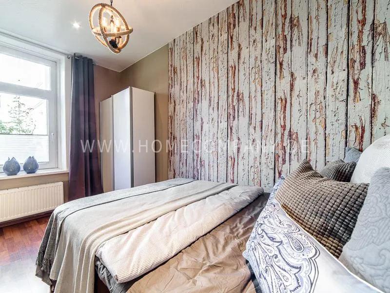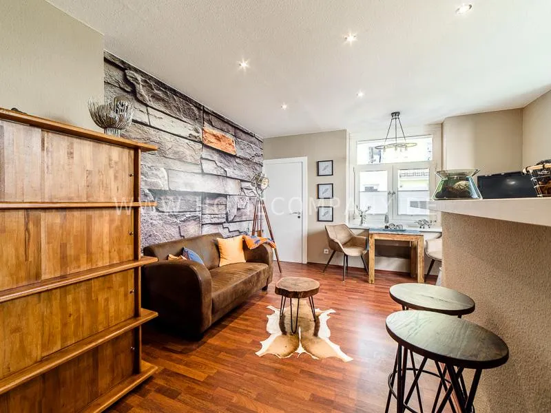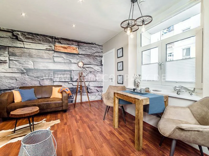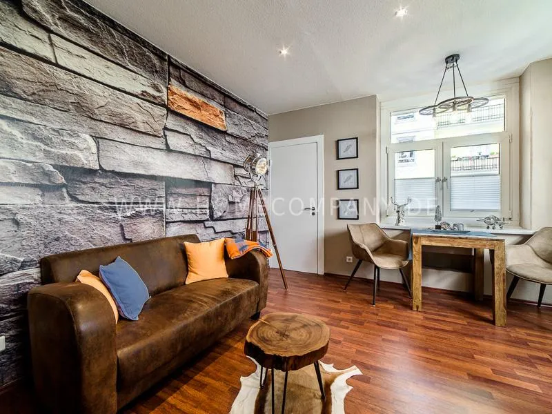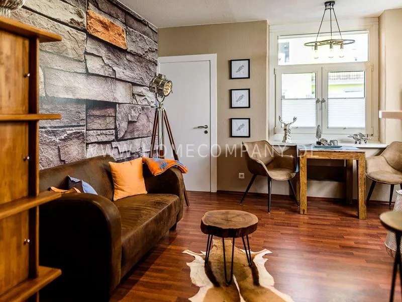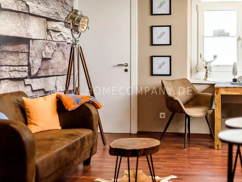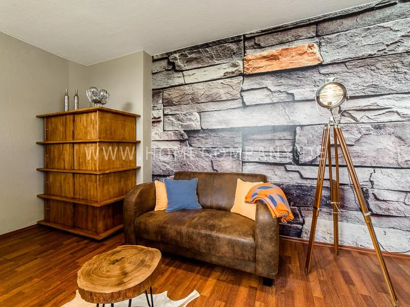Nioce furnished apartment, which enchants with an interior consisting of a cool leather couch, lamps in industrial look and a unique wall design. In contrast, we have modern accessories, a touch of vintage, a brand new, optimally designed bathroom and the high-quality sleeping comfort of a boxspring bed (1.40m). A small storage room offers plenty of storage space.