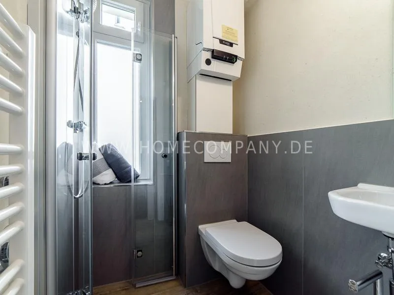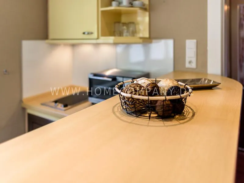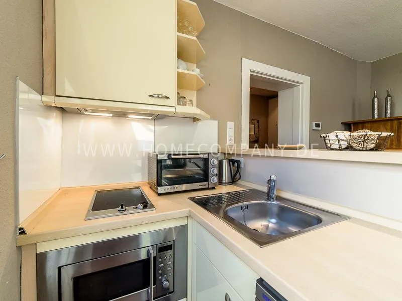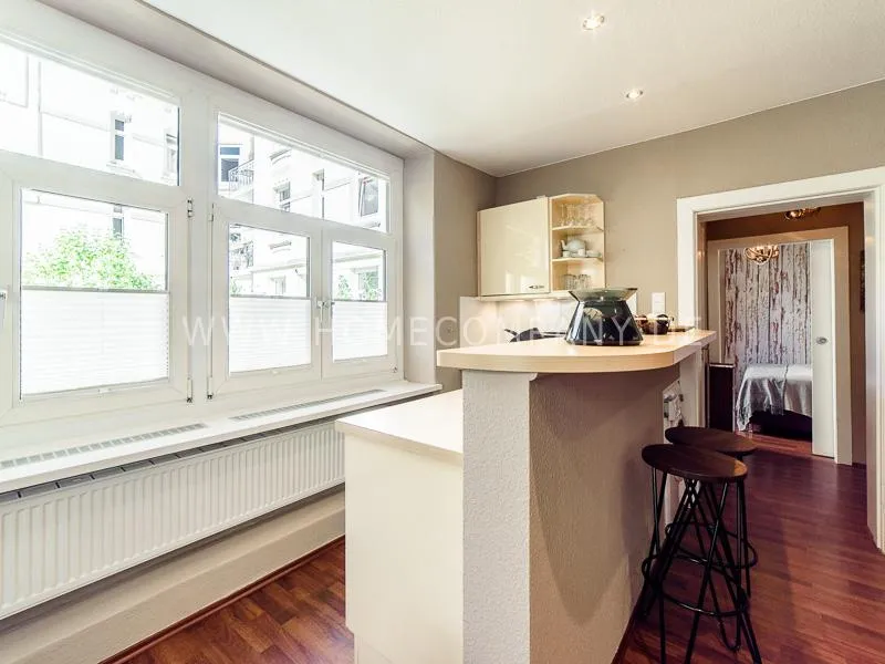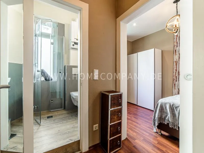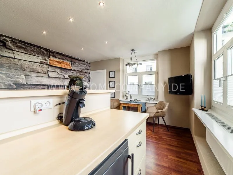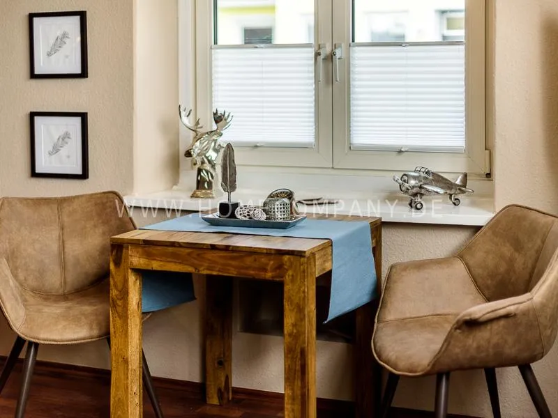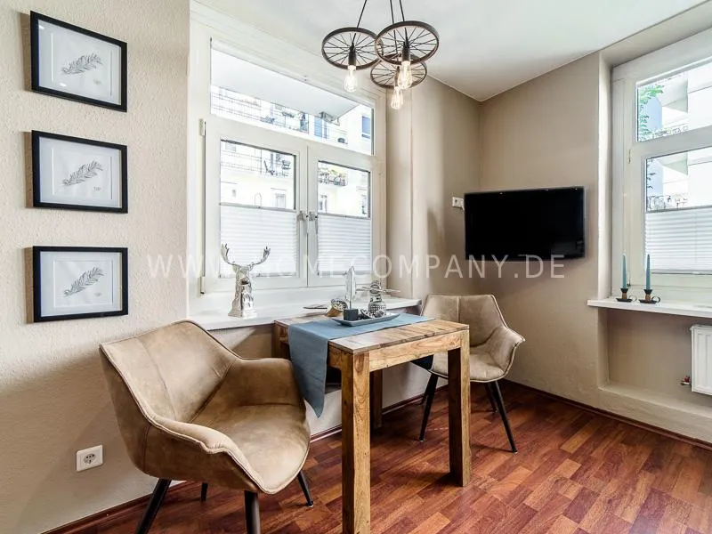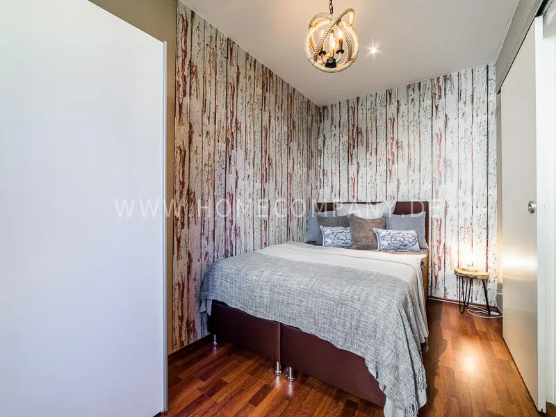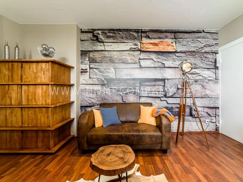 Nioce furnished apartment, which enchants with an interior consisting of a cool leather couch, lamps in industrial look and a unique wall design. In contrast, we have modern accessories, a touch of vintage, a brand new, optimally designed bathroom and the high-quality sleeping comfort of a boxspring bed (1.40m). A small storage room offers plenty of storage space.