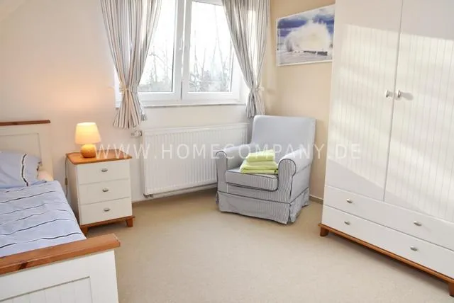 Double bedroom 13 sqm with bed 140 x200 cm, bedside table, armchair, Sat TV, chest of drawers, cupboard.