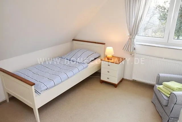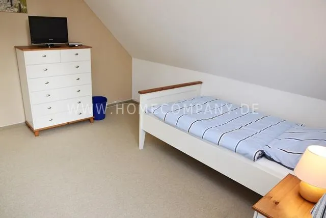 Single bedroom 11 sqm with bed 90 x200 cm, bedside table, armchair, Sat TV, chest of drawers, cupboard.