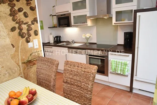 Fitted kitchen 12 sqm with dishwasher, table and chairs.