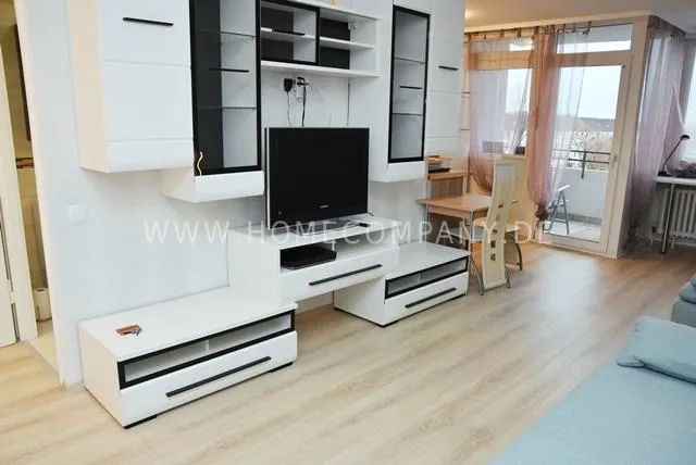 Living / bedroom with 2 sofa beds 140x200 cm, coffee table, wall unit with Smart TV, internet (500MBit) included, desk with chair, wardrobe, shelf,