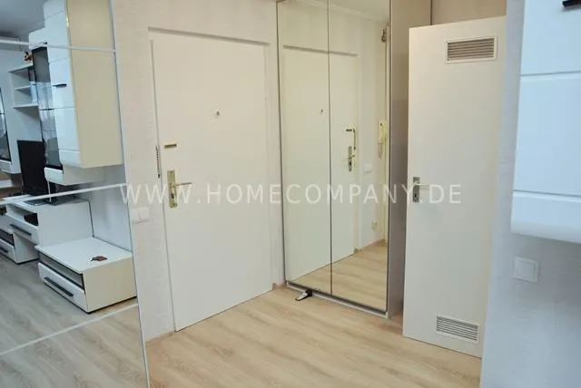 Modern business apartment with balcony on the 4th floor of a high-rise with lift in a central location. Open floor plan.