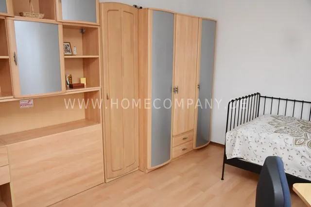 Bedroom with single bed (90x200cm), desk with chair, wardrobe.
