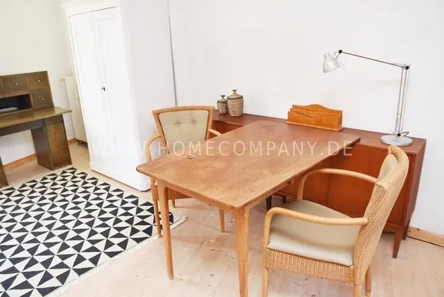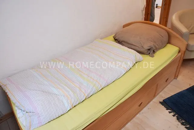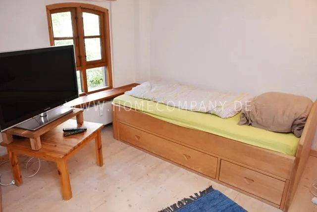 Bright living / bedroom 30 sqm with single bed, TV table, coffee table, leather armchair, secretary, closet, internet TV, T-Home Entertain. DVD player, stereo / MP3, cordless digital telephone, chest of drawers, soaped wooden floorboards, 2 modern wool carpets (Gabbeh / Kilim), kitchenette with 2 * freezer compartment, microwave, apartment is fully furnished.