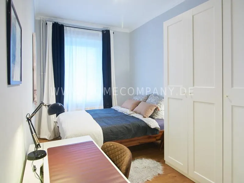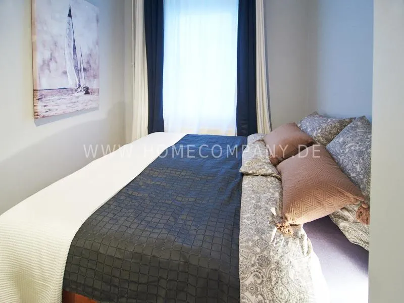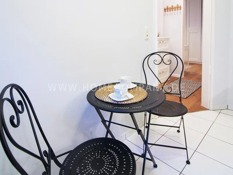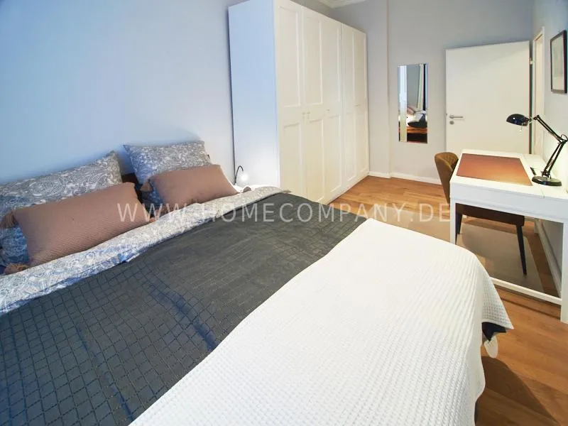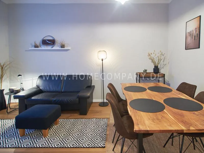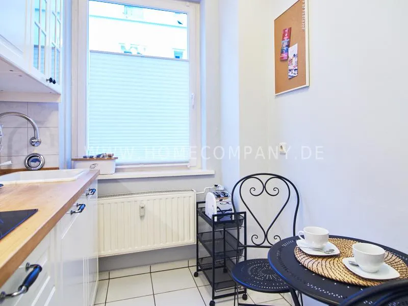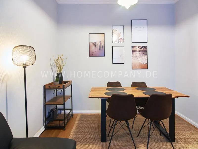 The apartment is very quiet in a courtyard. In the living room there is a sofa area and a dining table with four chairs and a bench. The bedroom is furnished with a 180x200 cm double bed and a desk. Very good and diverse shopping facilities as well as restaurants and cafes are in the immediate vicinity. There is a bicycle parking space in front of the front door. The Lutterothstraße underground station can be reached in one minute.