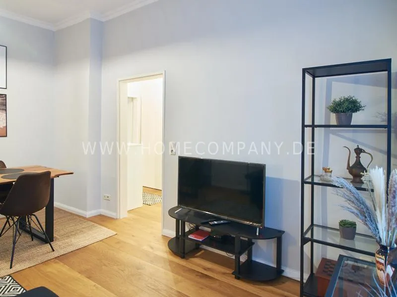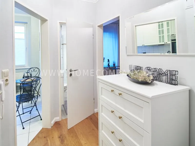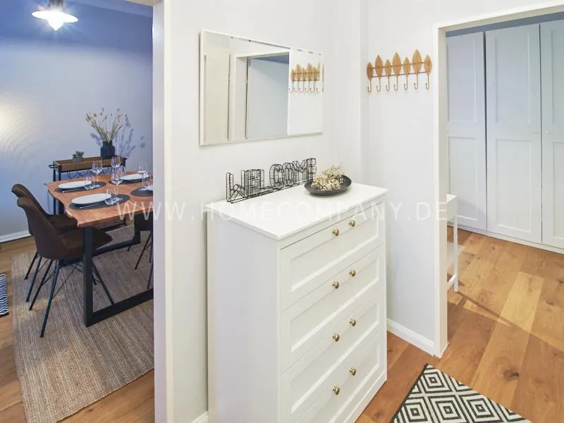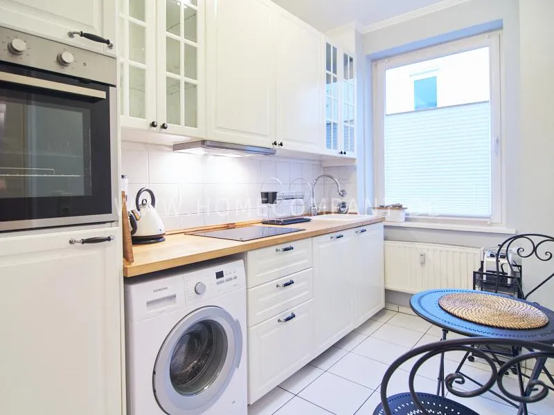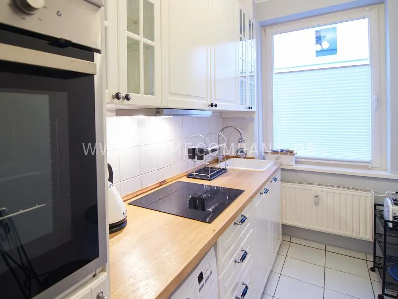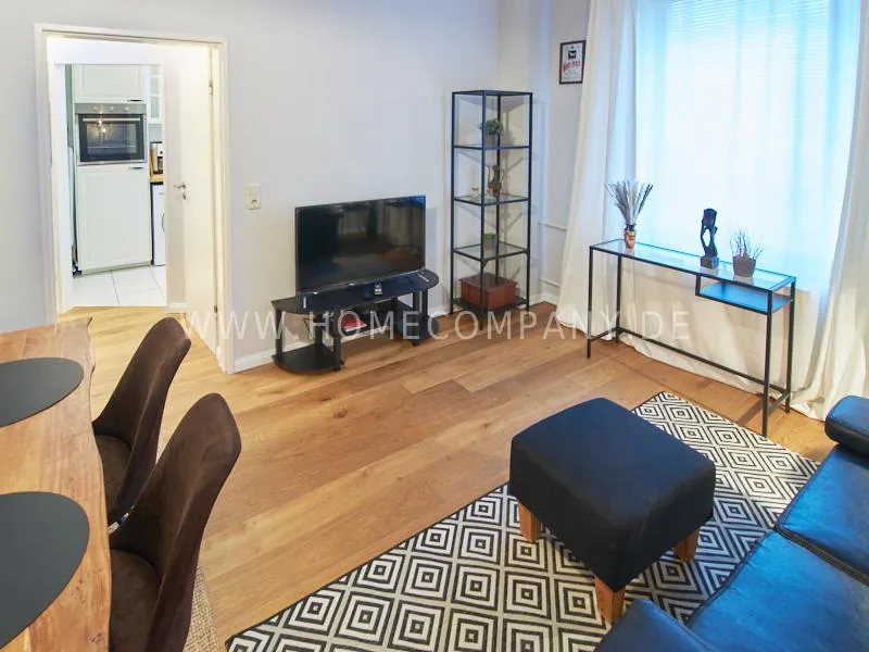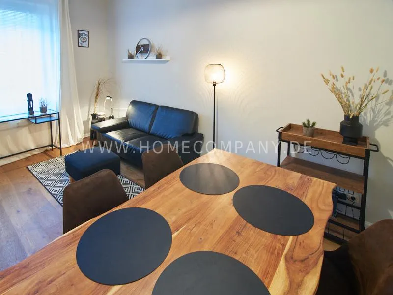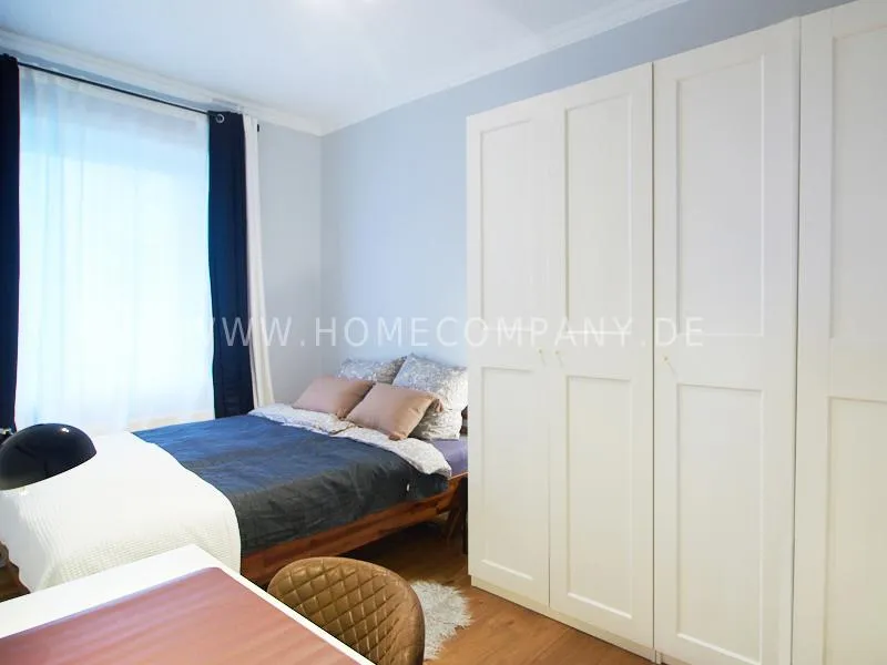The apartment is very quiet in a courtyard. In the living room there is a sofa area and a dining table with four chairs and a bench. The bedroom is furnished with a 180x200 cm double bed and a desk. Very good and diverse shopping facilities as well as restaurants and cafes are in the immediate vicinity. There is a bicycle parking space in front of the front door. The Lutterothstraße underground station can be reached in one minute.