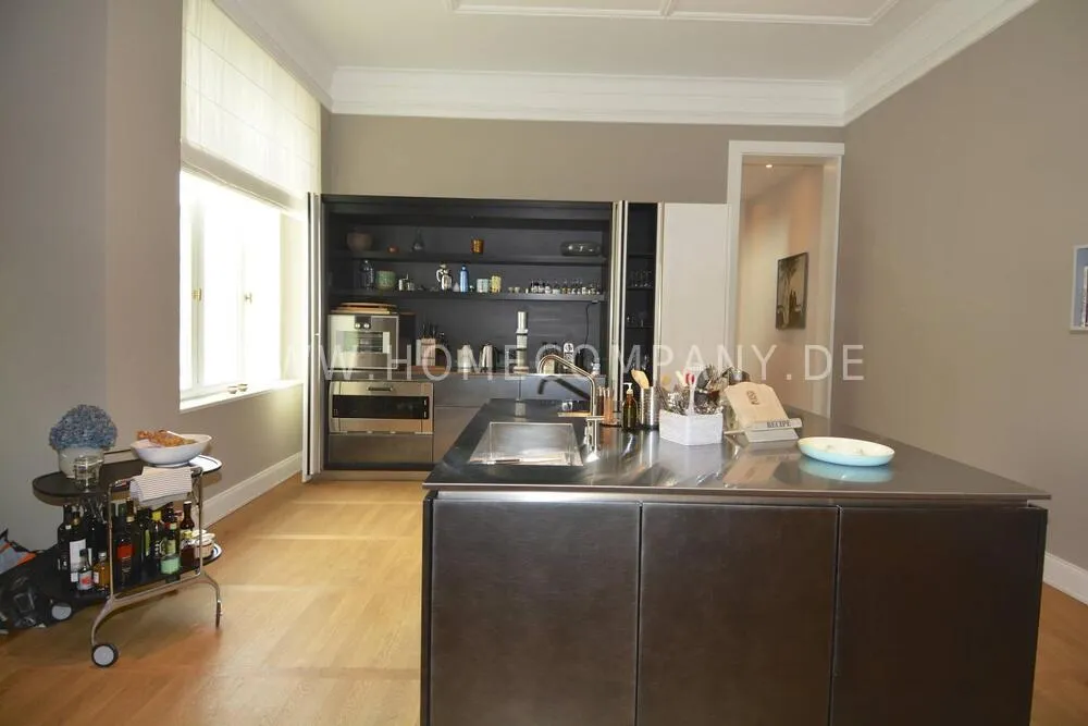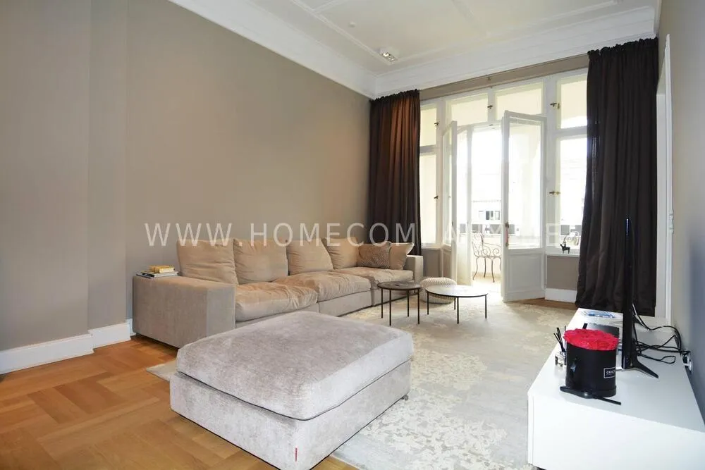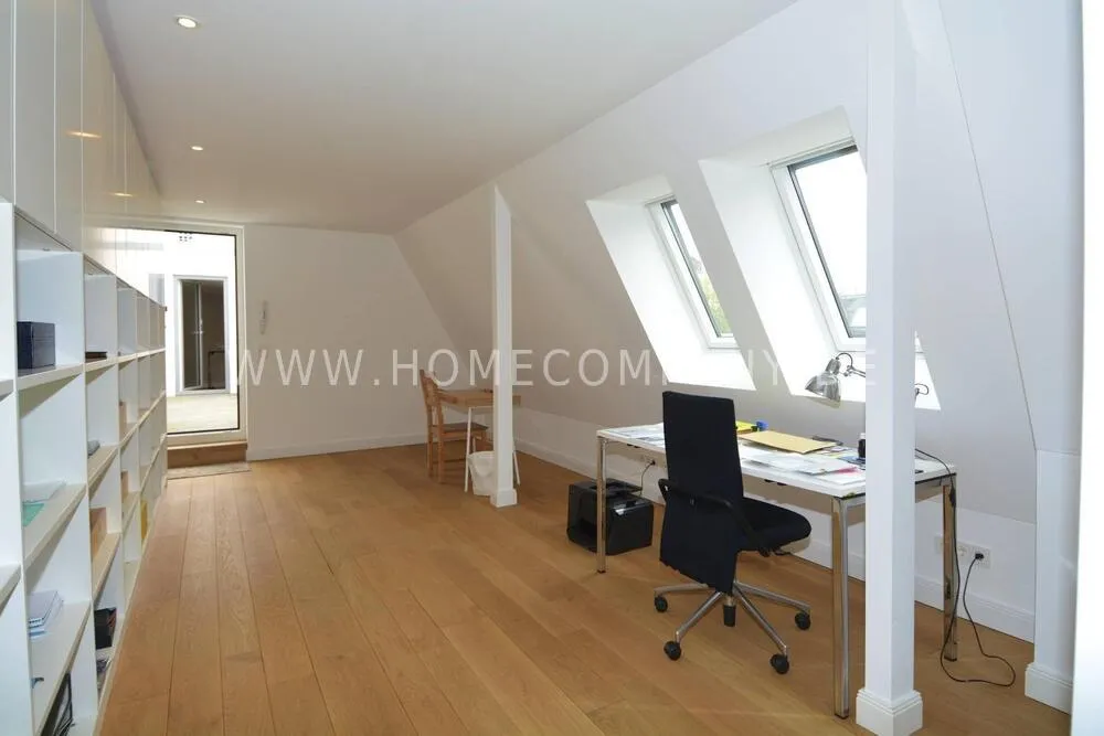 This highly exclusive duplex apartment on the 4th floor with elevator extends extensively over two floors. The renovated old building impresses with beautiful stucco decorations, double doors and high quality parquet floor. Luxurious furnishings, spacious living room with West loggia and expansive dining / kitchen area, custom built Boffi fitted kitchen. Four large, comfortable bedrooms, one ensuite with dressing room and daylight bathroom. Separate guest shower room with rain shower and underfloor heating, two additional guest toilets, three balconies, a west loggia and a spacious roof terrace.