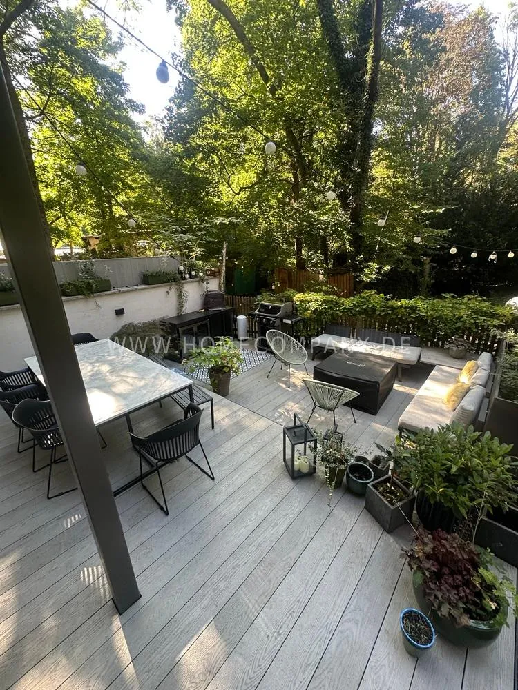 This attractive property is a ground floor apartment with impressive, high-end interior design and is available to move into at short notice. The apartment has two bathrooms and a separate guest toilet, as well as four inviting rooms. What makes this property particularly attractive is its unique terrace surrounded by greenery (and so centrally located in the city).