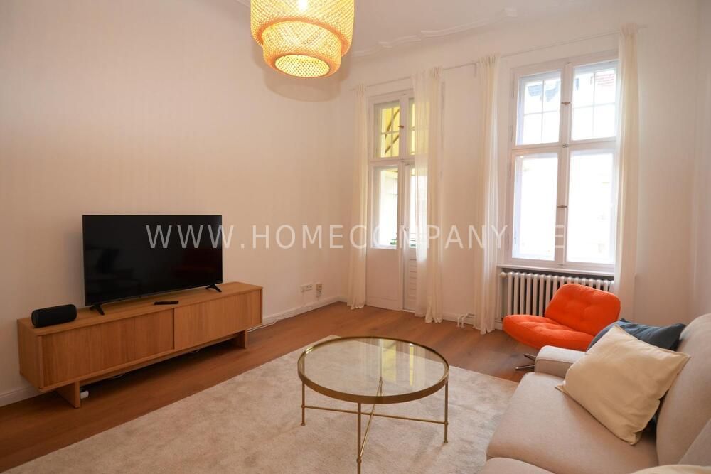 This newly renovated two-room apartment is located near the Spree River and Charlottenburg Palace. It offers an elegant, warm ambiance and a spacious living area.