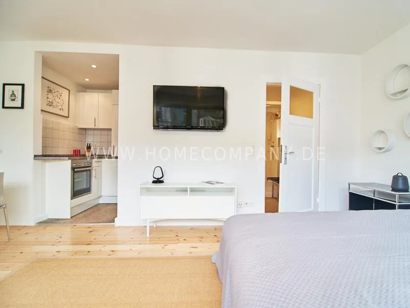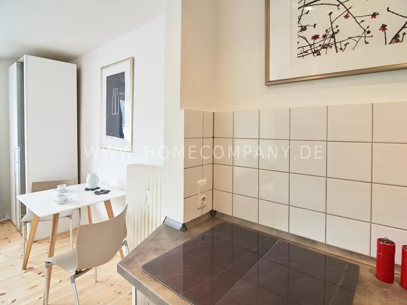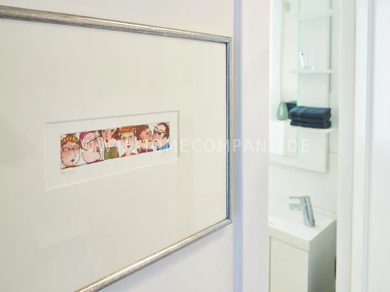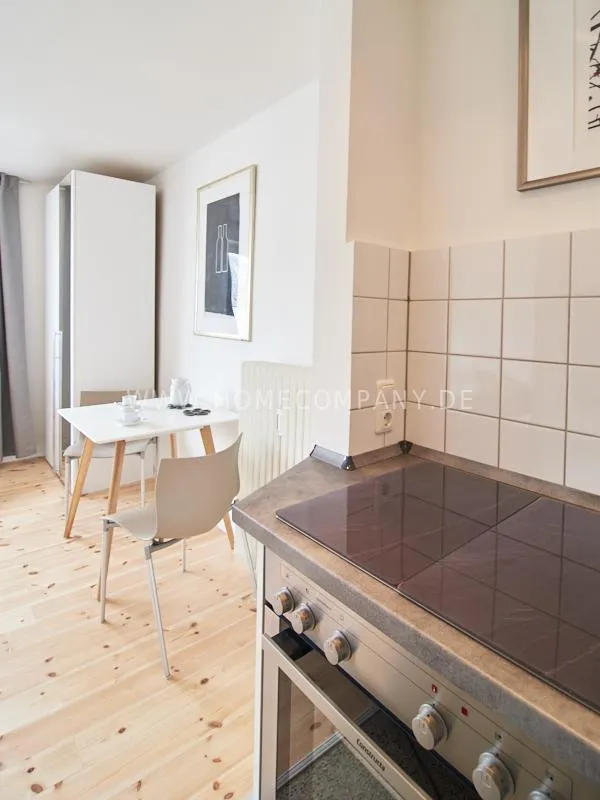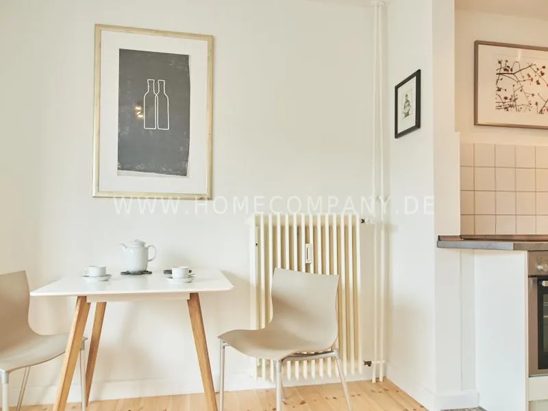 Modern furnished apartment in a central but quiet location in Eimsbüttel. The decor is modern and tasteful in bright, fresh colors. The very careful equipment leaves nothing to be desired. The kitchen is open to the living area. Here is a table for four people.