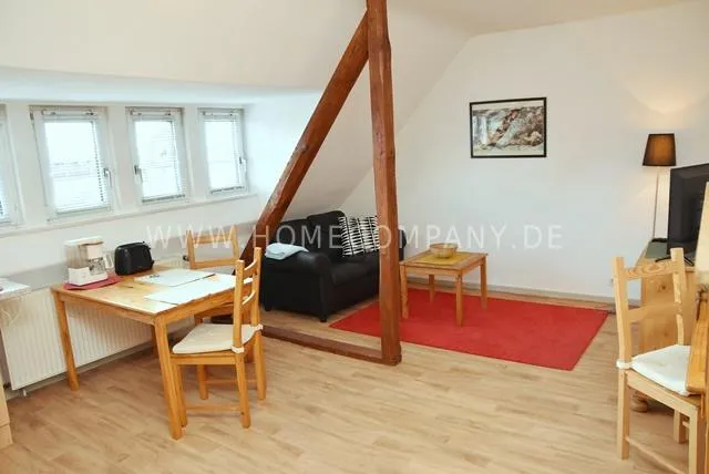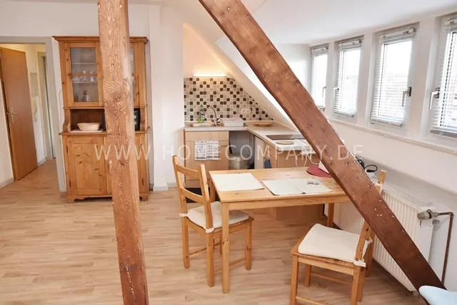Small apartment house in a quiet street. Modernly furnished apartment on the 3rd floor, attic in Alt-Ricklingen, pine wood furniture.