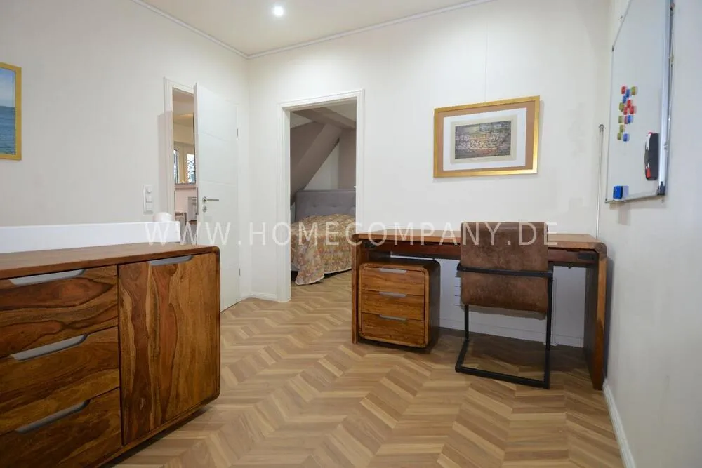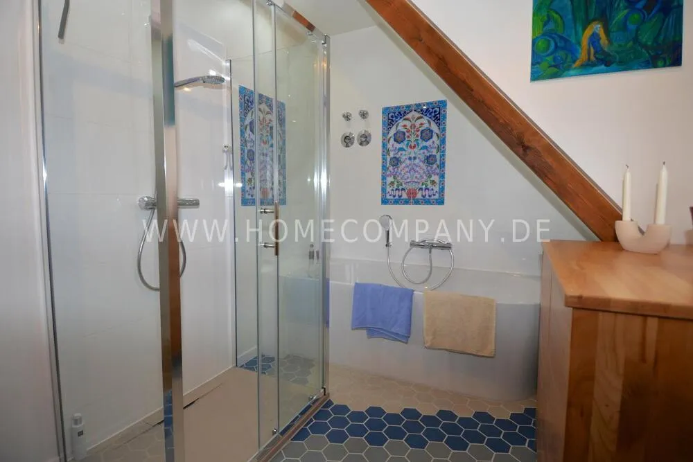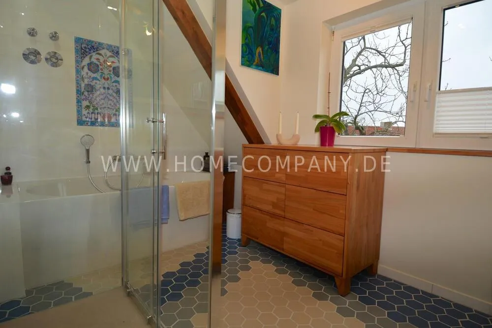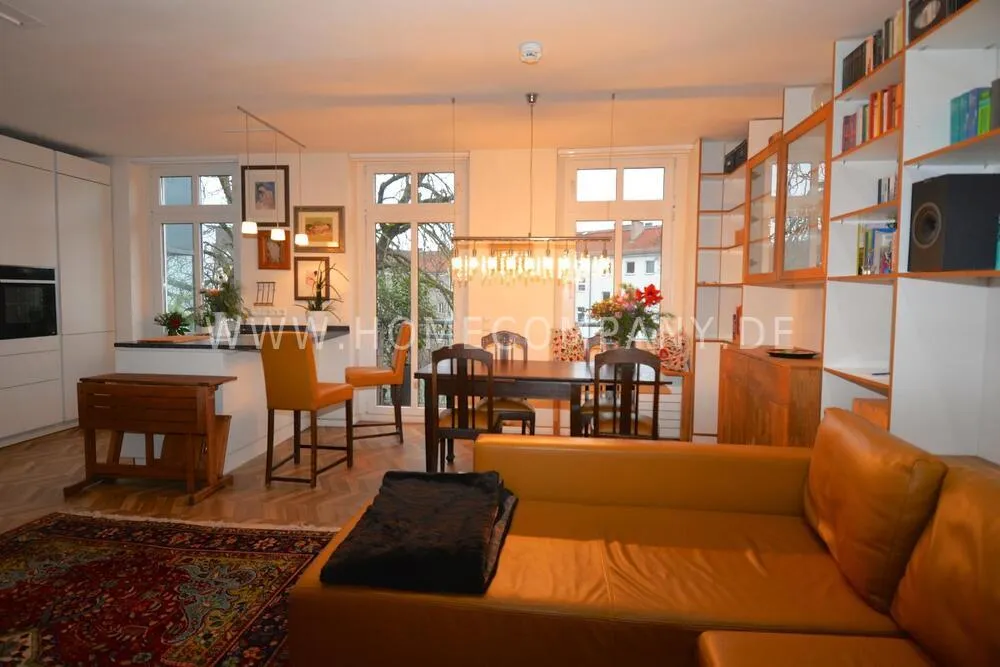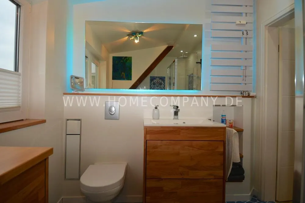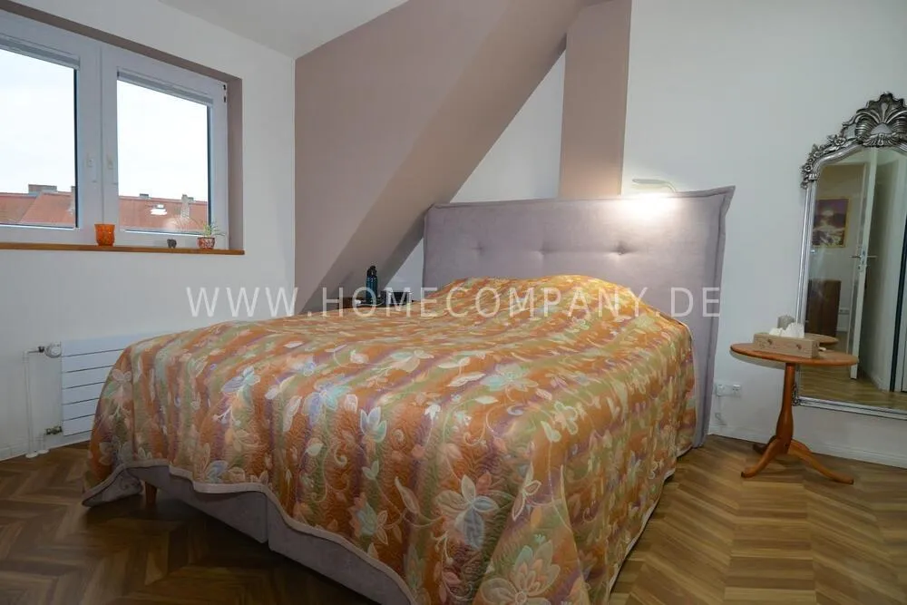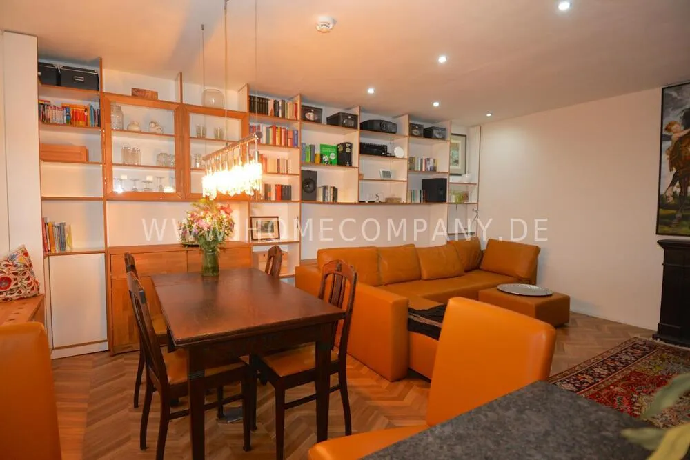 This stylishly furnished 2-room maisonette offers quiet living in a courtyard setting, right in the middle of Berlin’s vibrant neighborhood. The upper floor features a bedroom, a newly renovated bathroom with a shower and bathtub, a workspace that can function as a third room, and a walk-in wardrobe. On the lower floor, the open-plan living area with a modern kitchen, equipped with an induction cooktop with grill function and a steam oven, provides a perfect space to relax. The adjoining balcony with a retractable awning adds a cozy outdoor retreat. Additional highlights include a home cinema with projector and screen. The apartment is fully furnished, including bed linens, towels, and kitchenware. Despite its central location, the apartment is wonderfully quiet and ideally connected. Perfect for those who appreciate modern design and urban living!