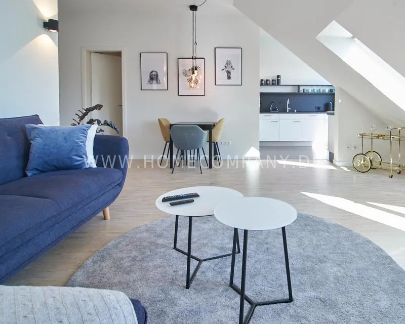 Die helle und hochwertig möblierte 3-Zimmer-Dachgeschosswohnung befindet sich in ruhiger und dennoch zentraler Lage von Hamburg-Barmbek-Süd.