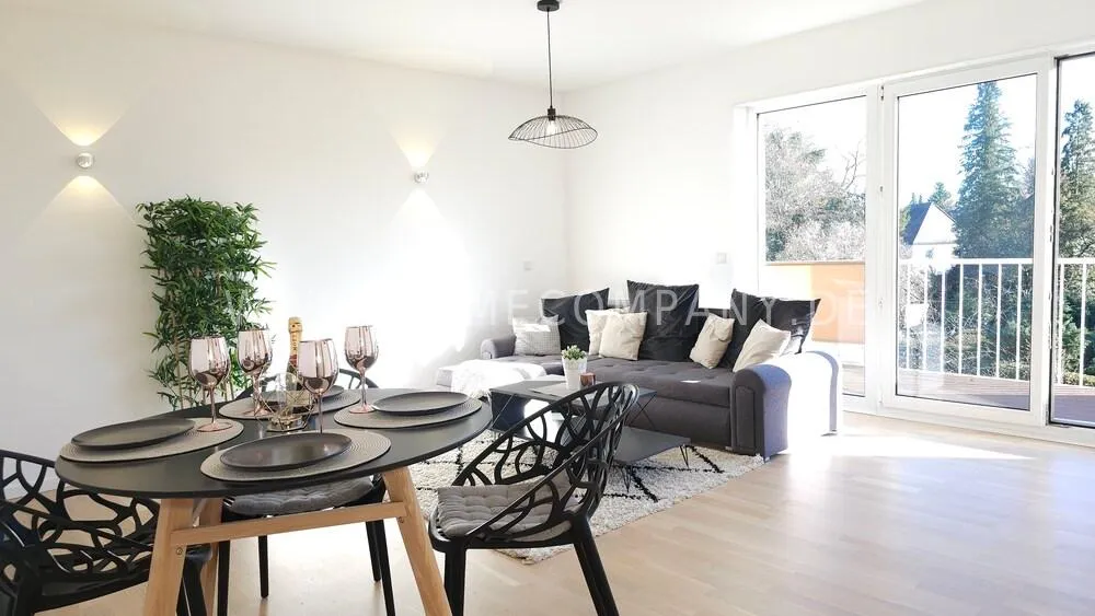 The bright and stylishly renovated penthouse apartment is located in the popular district of Sendling, directly next to Südpark.