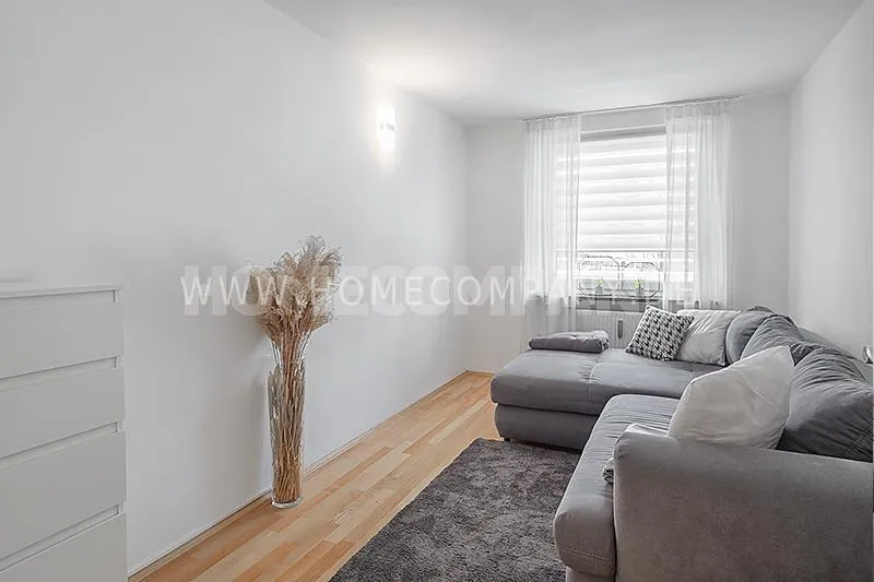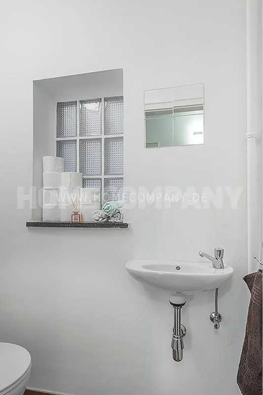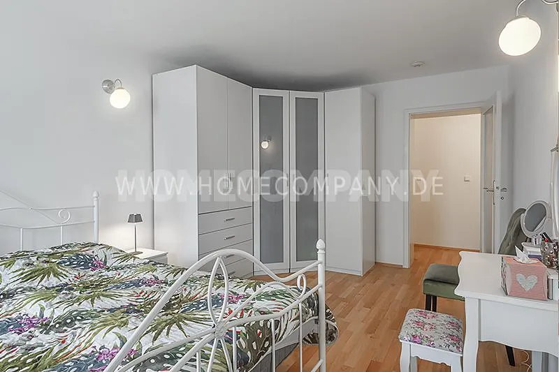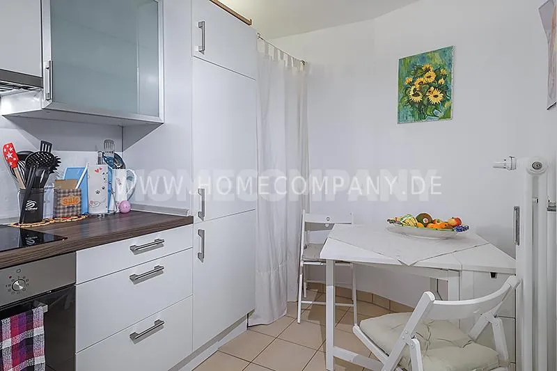Modernly furnished 3-room flat with balcony in Schwabing West. Ground floor. The bright living room has a comfortable sofa and a dining table for up to 6 people; access to the large balcony from here. The separate kitchen is equipped with everything you need on a daily basis, e.g. dishwasher, all kitchen utensils. The bedroom has a double bed and a wardrobe. Guest room with sofa bed. The daylight bathroom offers a bathtub. Separate toilet.