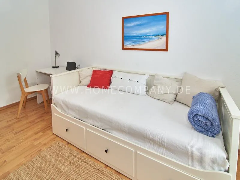 The apartment is bright and welcoming, located in a well-maintained residential building with a peaceful neighborhood and plenty of greenery in the surroundings. Shops, cafés, and restaurants are just a few minutes away, and the nearest underground station can be reached on foot in about five minutes. This makes the apartment ideally connected while still offering a pleasant and relaxed living environment. Ample parking space is available directly in front of the building for those arriving by car.