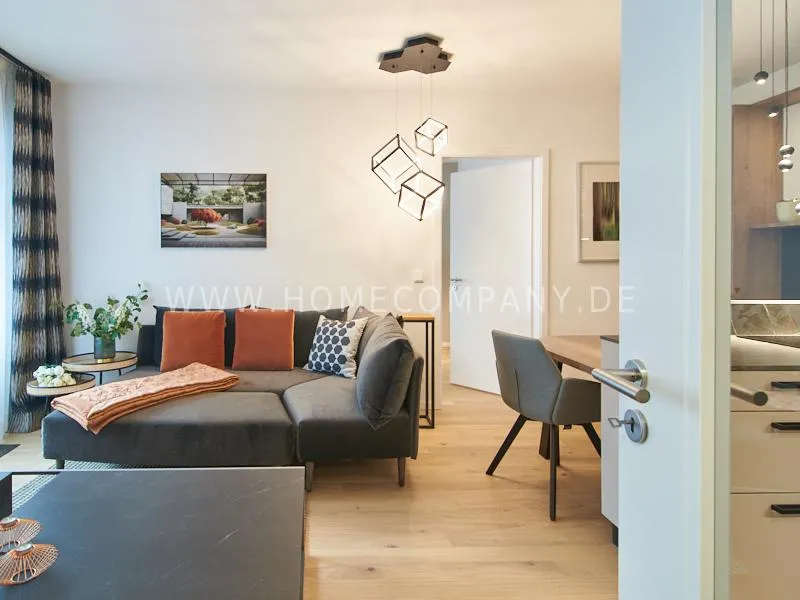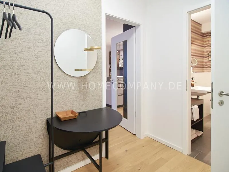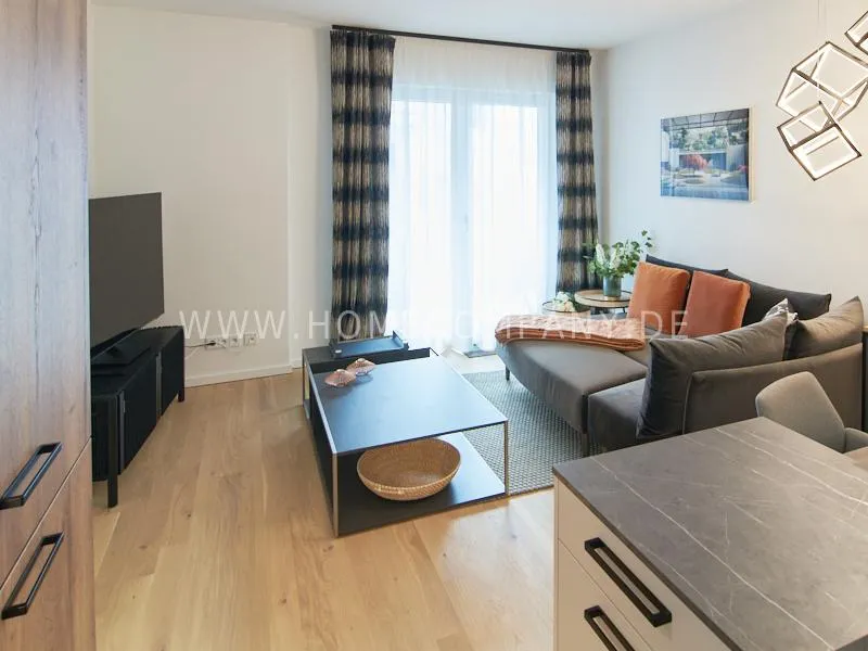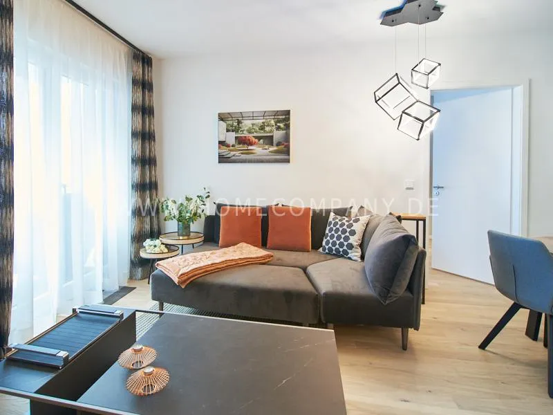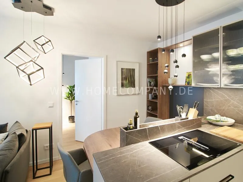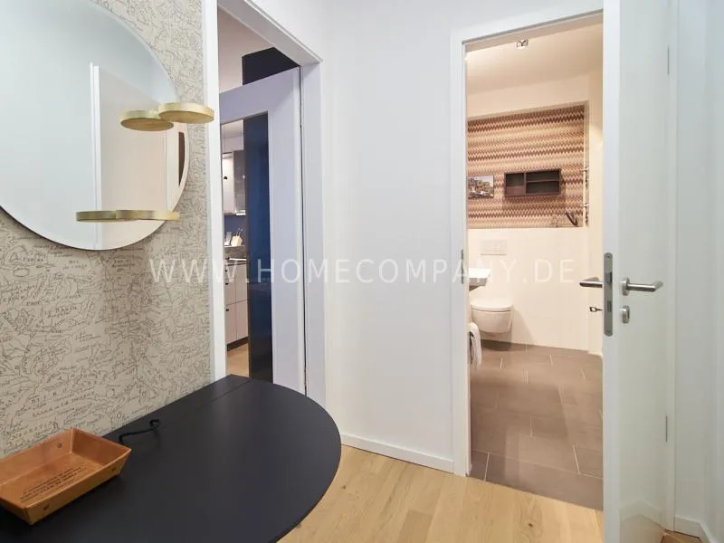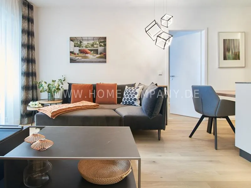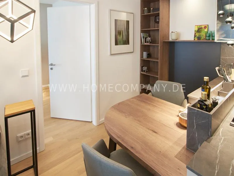 Well-designed 2-room flat with 50 square meters of living space plus a terrace. Very exclusive furnishing and equipment with branded kitchen appliances and carpentry fittings/furniture. It is a new building (year of construction 2022, furnishing 2023) with underfloor heating and real wood parquet floors. There is a washer dryer in the apartment. A separate dressing room is available. Smart TV via Magenta TV. Shops, cafes, etc. are in the immediate vicinity. The main train station is three subway stops away; the popular "Außenalster" can be reached on foot with a walk along the Eilbek Canal. Optionally, an underground parking space can be rented for €150 per month.