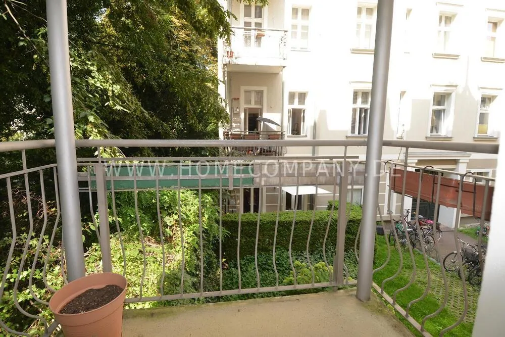 Nice 2-Room-Apartment, situated in a quiet area near the "Schloss Charlottenburg". The flat is located in the 2. rear building and has a balcony with view over the Schustehruspark.