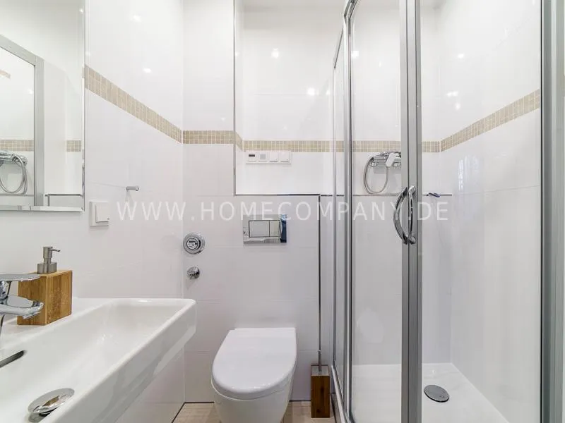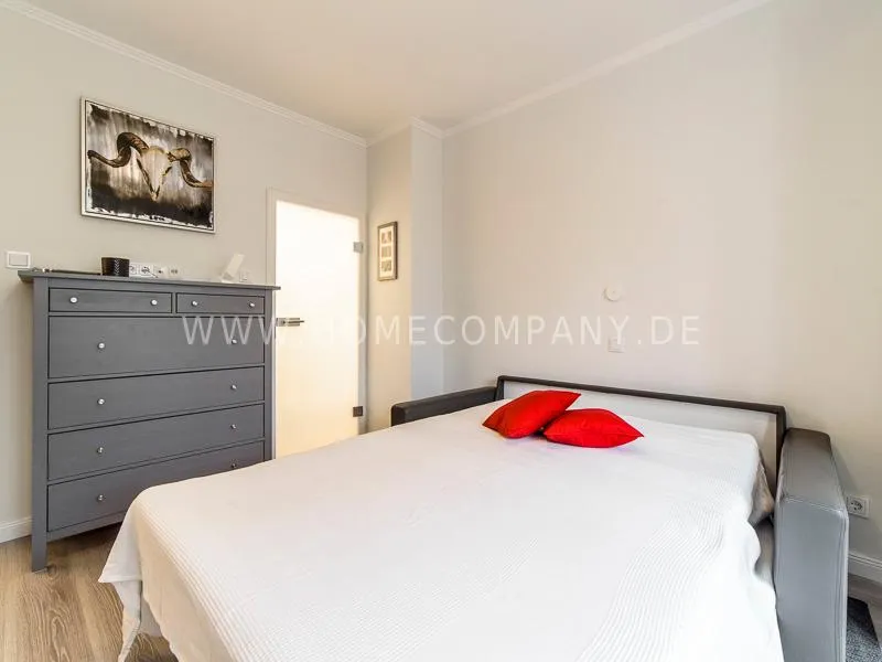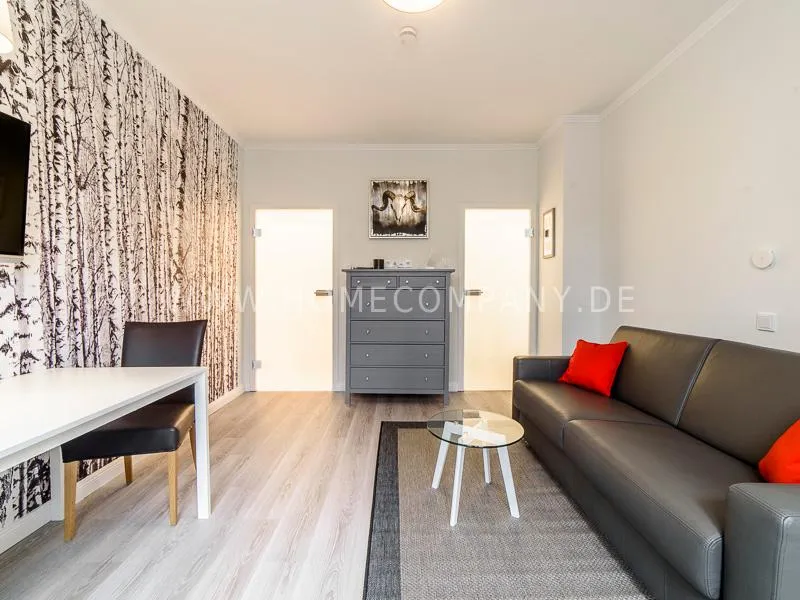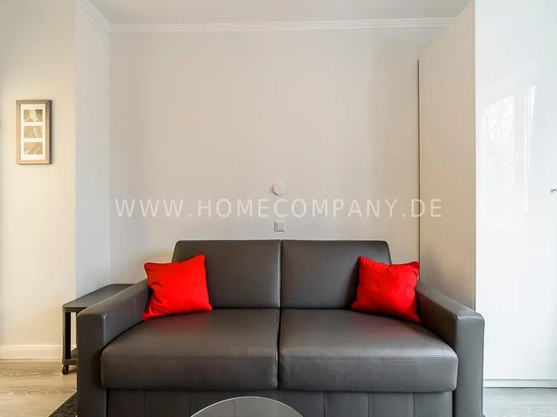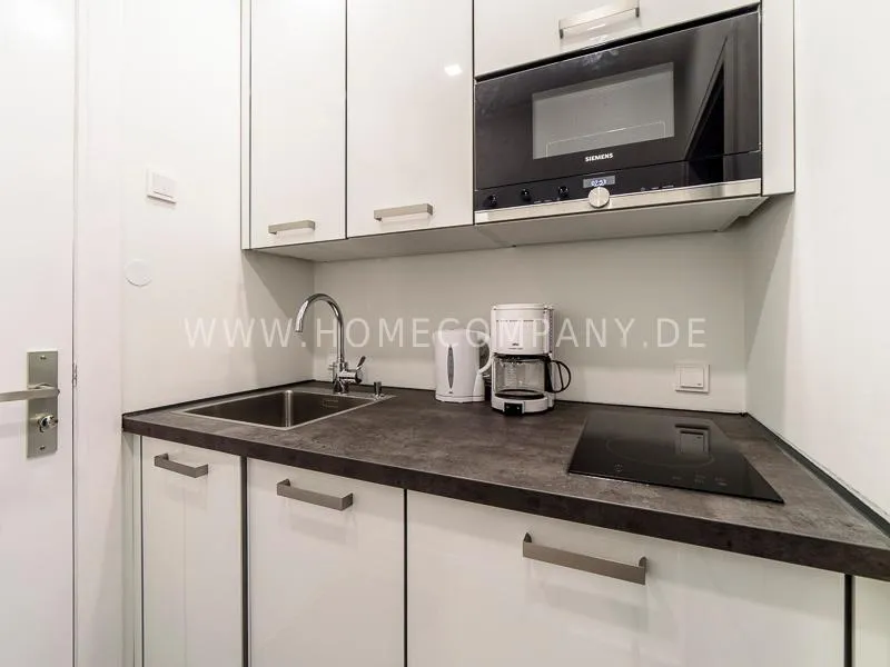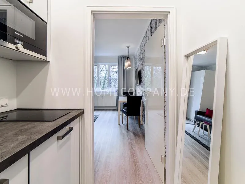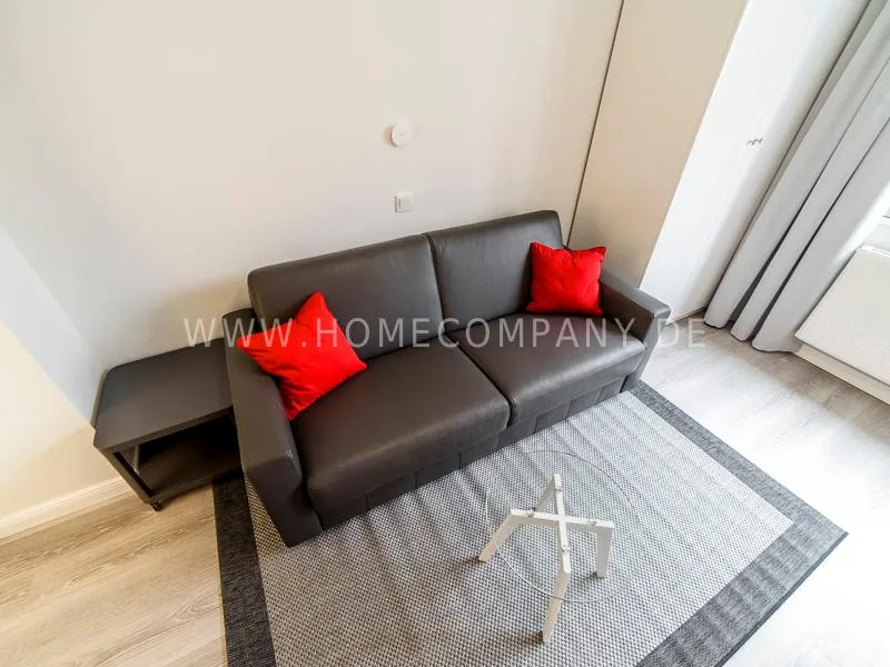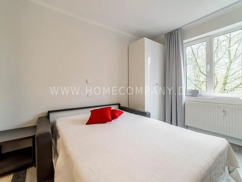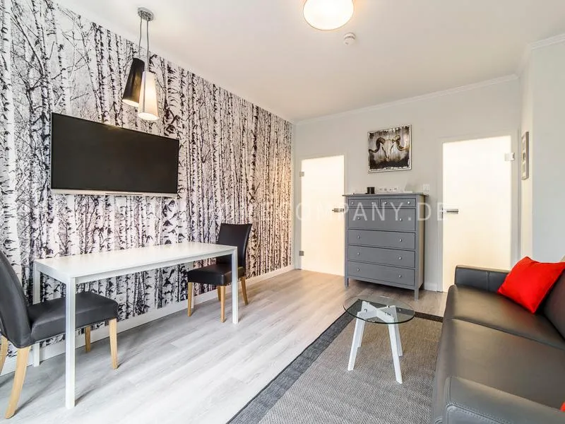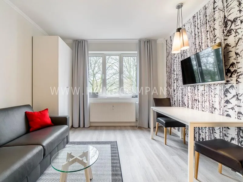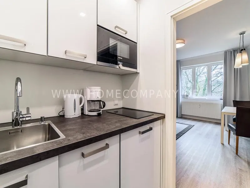 In the living room / bedroom is a high-quality, equipped with mattress and slatted, bed sofa available. Furthermore, a small table with two chairs offers a nice dining area, which can also be used as a desk. The apartment is characterized by many carefully planned and consistently implemented details. By using accurately fitting objects in the bathroom, optimal use of space is achieved. In addition, there is an integrated bathroom radio available. The pantry kitchen is placed in the entrance area, so that the living room can be used optimally. An additional spatial effect arises here by a held in gray and white tones birch forest wallpaper. In the living-bedroom is a 48 "TV with Ambilight effect as well as a bluetooth / CD player available. The apartment is located opposite a park. The nearest city bike station is only 50 meters away. There is no washing machine in the apartment. Next washing center is 10 min walking distance away (close to U-Bahn Dehnhaide).