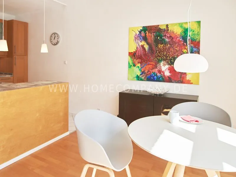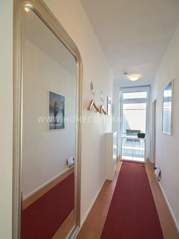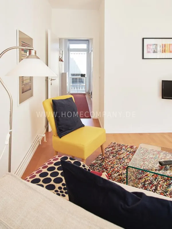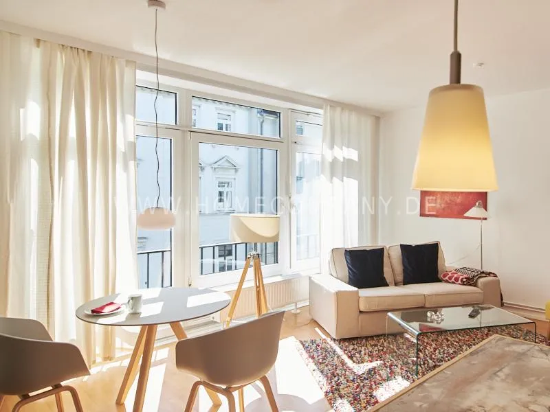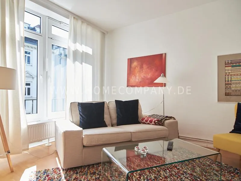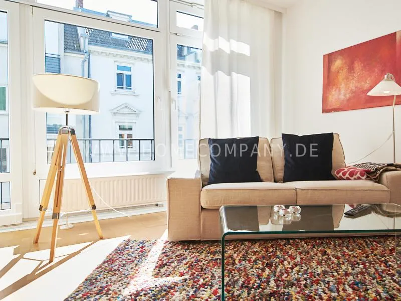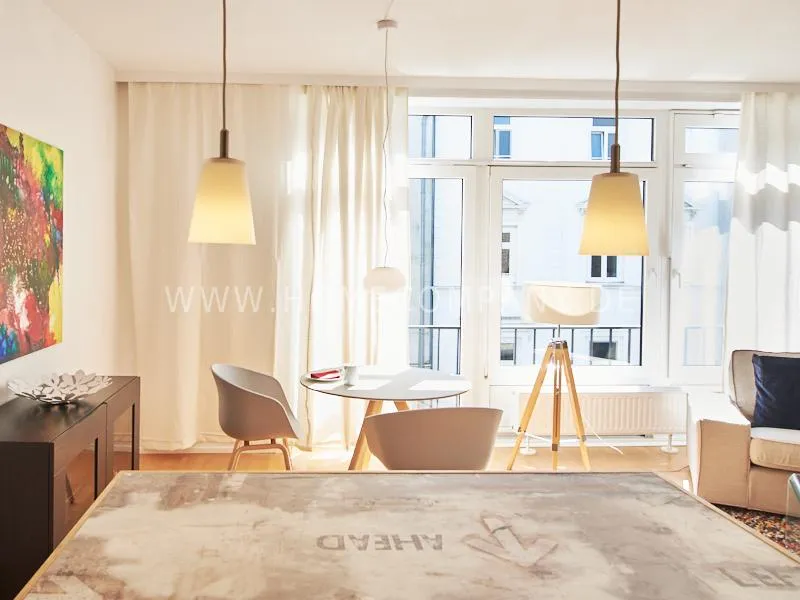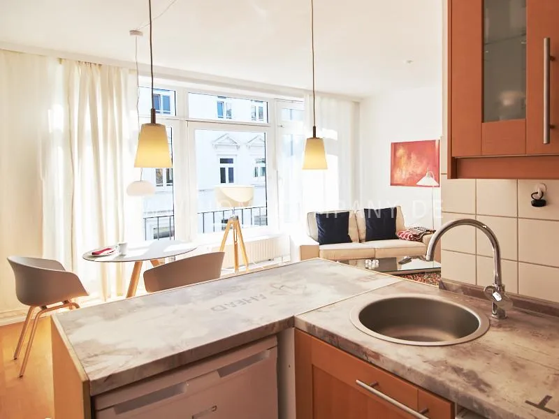 In 2020 renovated apartment in a beautiful location in Rotherbaum. The apartment is very bright, well cut and modern furnished. The spacious living room adjoins a bar at the open kitchen area. It has a seating area and a dining area. The bedroom is equipped with a 1.60 wide double bed. During the lease period, a cleaning service can be booked.