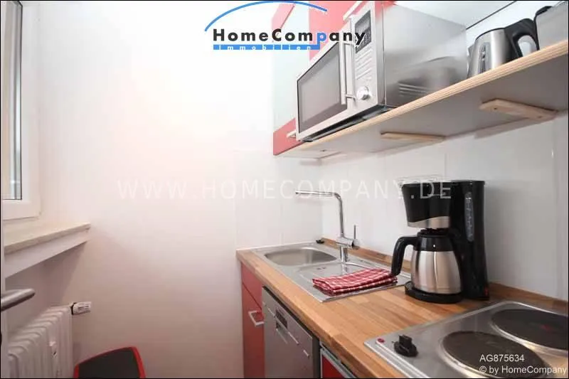 Nicely furnished 1-bedroom apartment with balcony in Untergiesing. 3rd floor. Combined living/bedroom with double bed and dining/work area. Recently renovated, furnished in a modern style with white lacquered furniture and wood decor. Modern kitchen equipped with everything you need daily. Timelessly tiled bathroom with tub. Telephone and internet on request. Internet fee is 25, - EUR + VAT. Underground parking space (optional). Including weekly laundry and dry cleaning service. Rent plus 7% VAT. Shared washing machine and dryer available in the house.