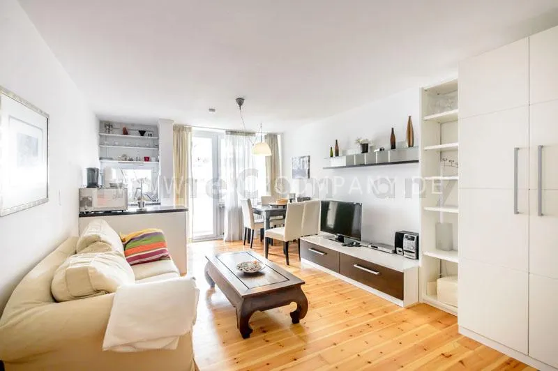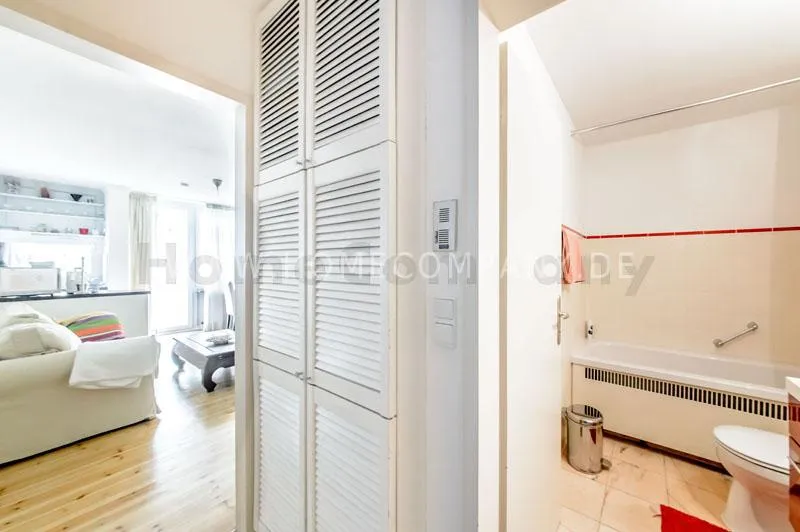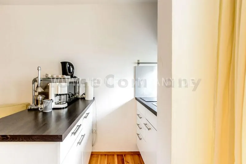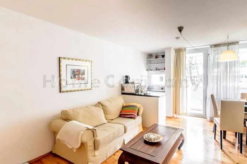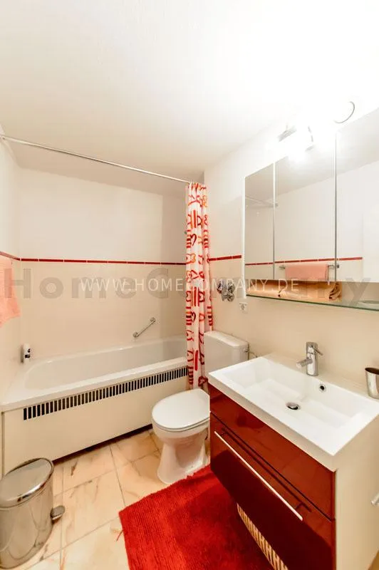 Very modern furnished one room apartment with balcony, close to Rotkreuzplatz. Combined living and sleeping area with a bed, sofa and eating place. Bathroom with tub. The apartment is with parquett flooring, carpet and marble. New kitchen with ceramic stove top and microwave. Laundry in the basement. Every day shopping facilities close by.