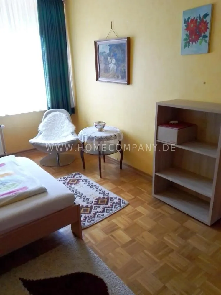 This nice furnished room comes with beautiful parquet floor, a bed, a wardrobe and a TV with cable-TV. Shared kitchen and shared bathroom (2 parties).