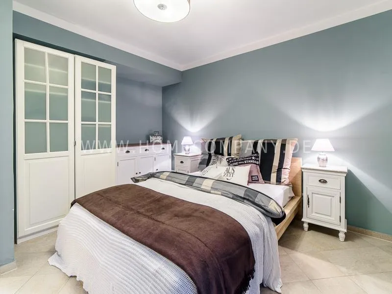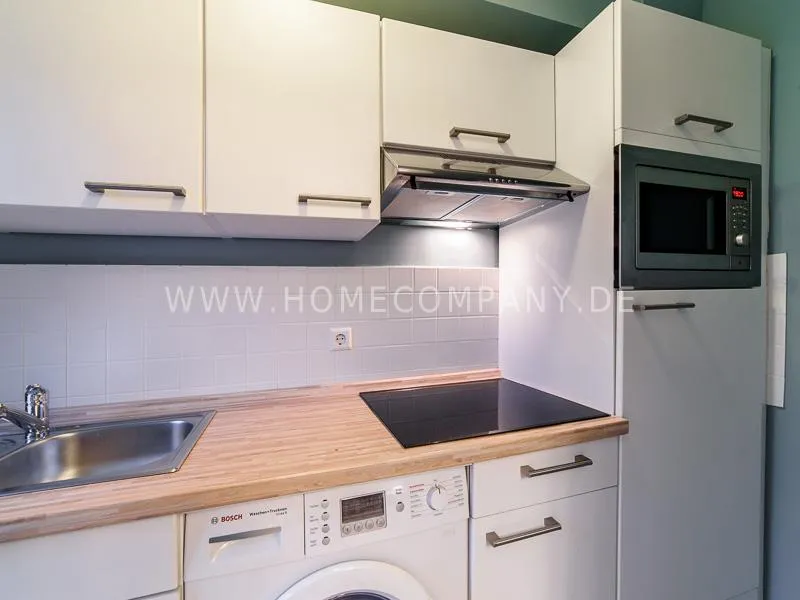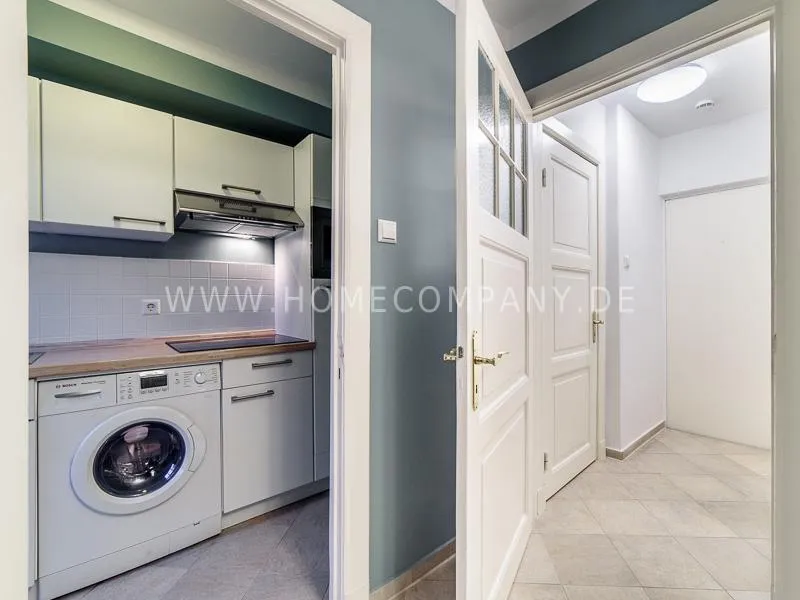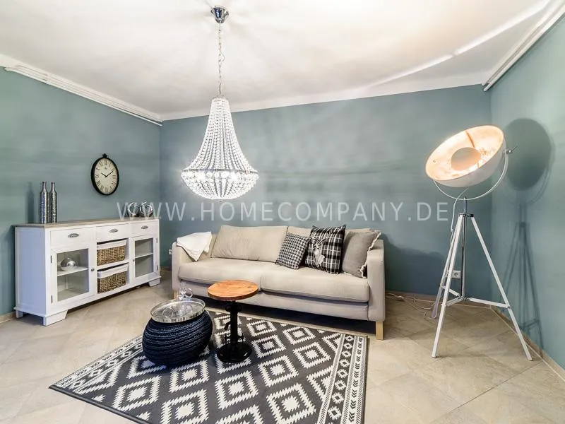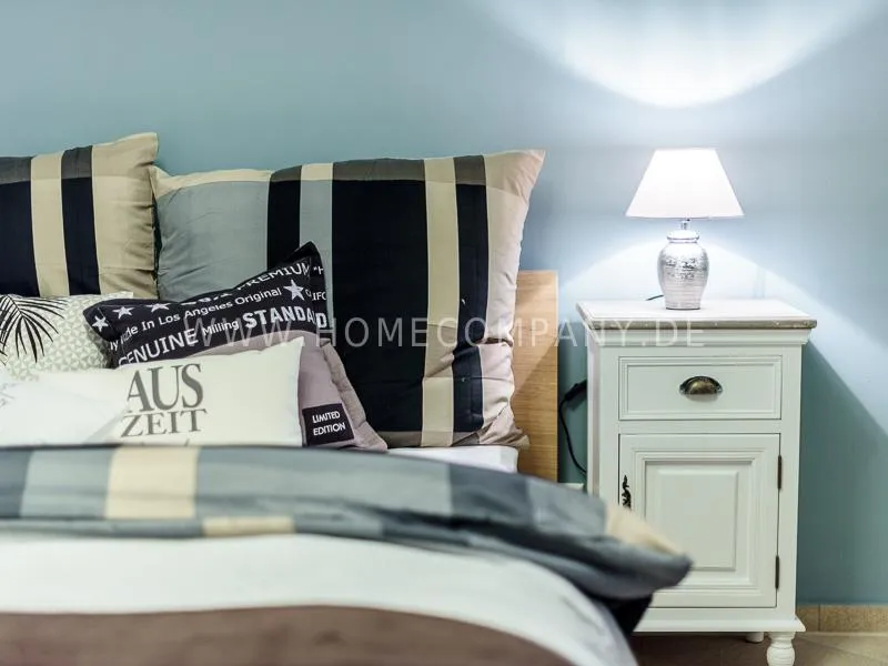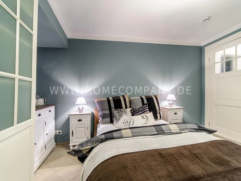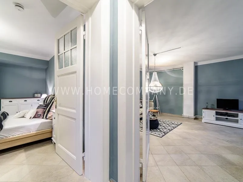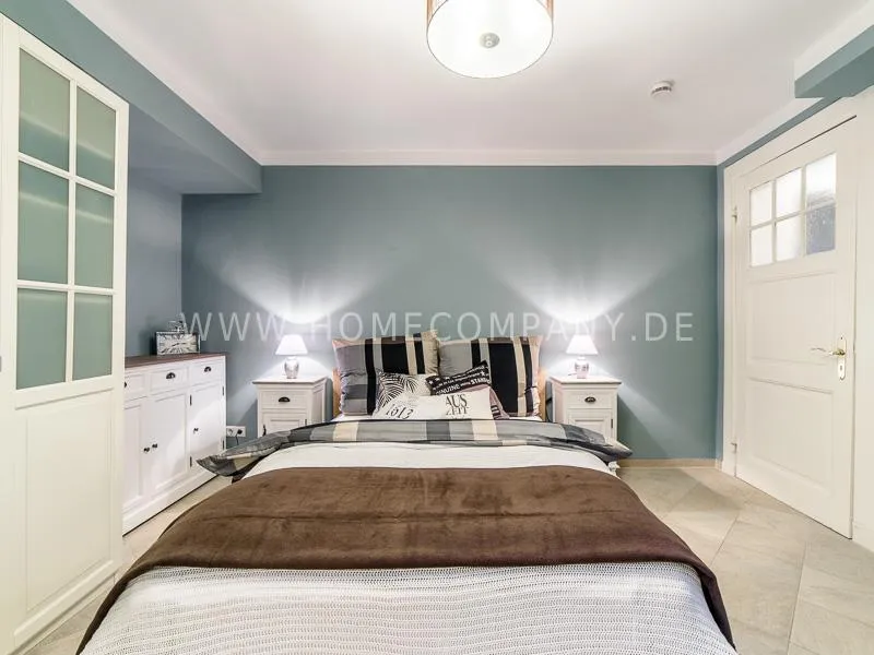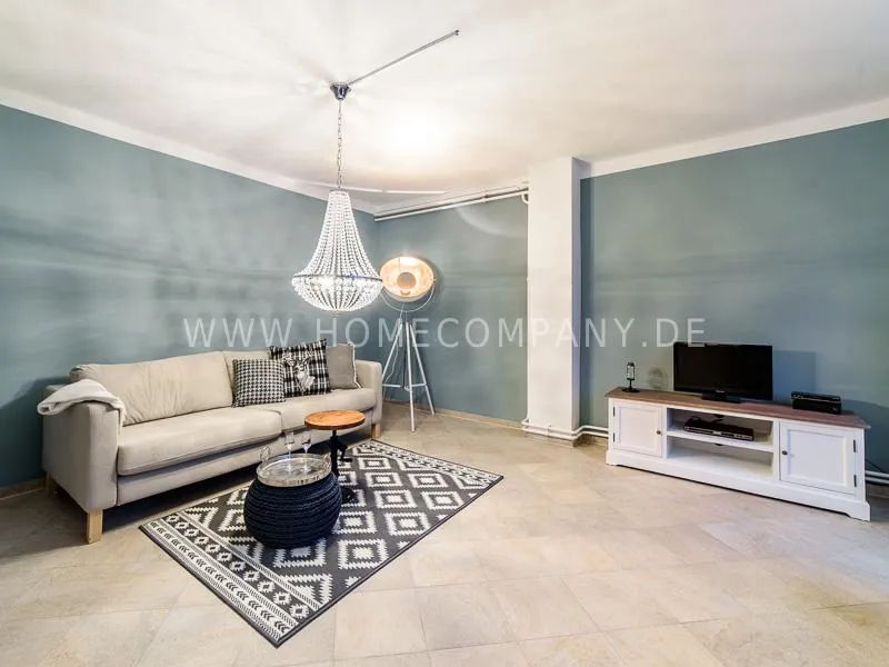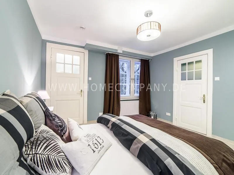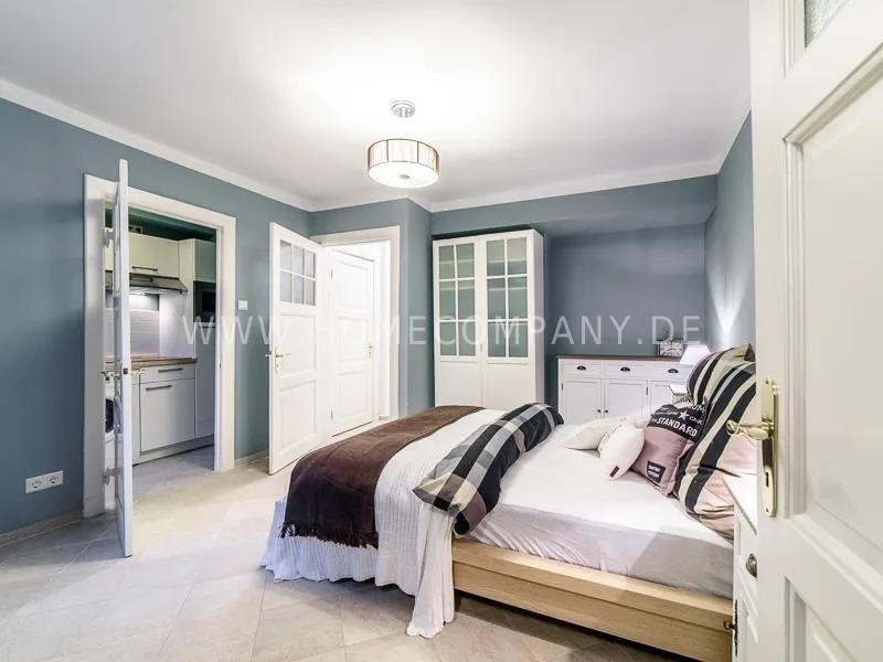 Completely furnished flat in Eppendorf. The noble and stylish living ambience with a bright stone floor, underfloor heating and turquoise-blue-gray walls - is characterized by classically elegant white country-style furniture in fir wood look and shell handles. Some of the highlights in the living room are the large chandelier, a cool industrial table and skilfully coordinated home accessories. The elegant large floor lamp immerses the room in a warm, cozy and comfortable light. From the dining table you have a view of the absolutely quiet garden. There is also a quiet terrace. There is a Nespresso coffee machine, dishwasher, oven, stove and microwave. Very good parking is available on the street. WLAN / Internet are included.