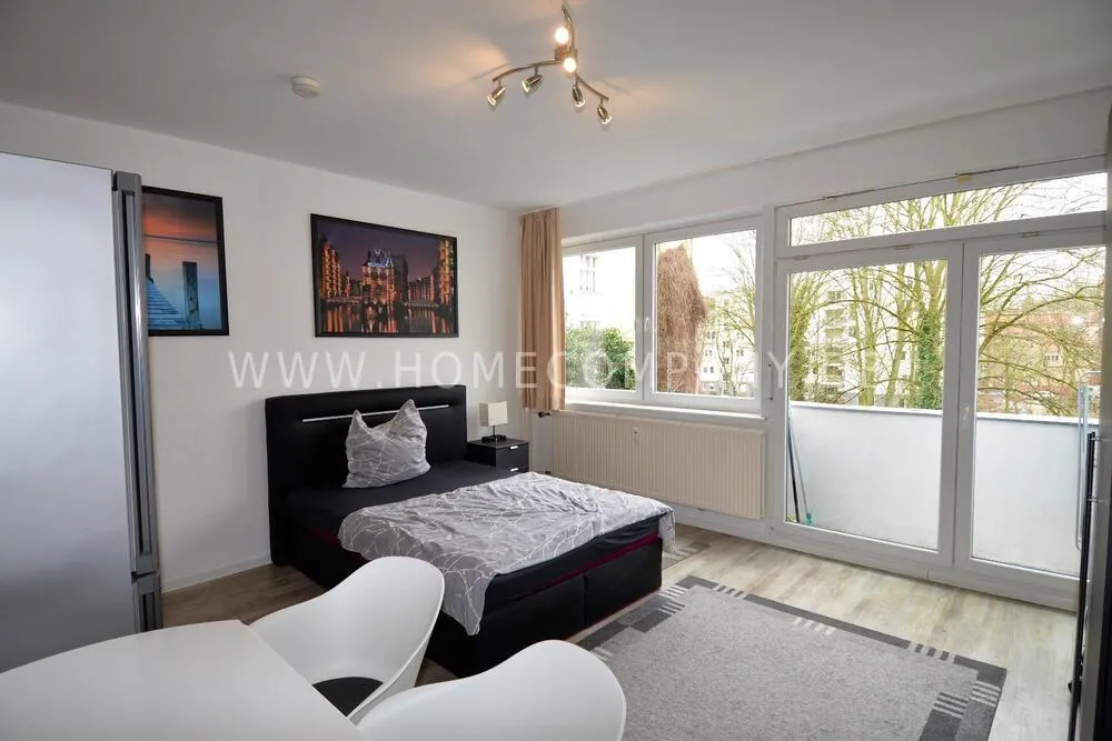 Brandnew and nicely furnished studio flat in Charlottenburg. The flat was completely redone. Good sized studio room with a tiny balcony, doublebed and a wardrobe. The small kitchen comes with a microwave oven, and the bathroom has a shower. Internet and washer included.