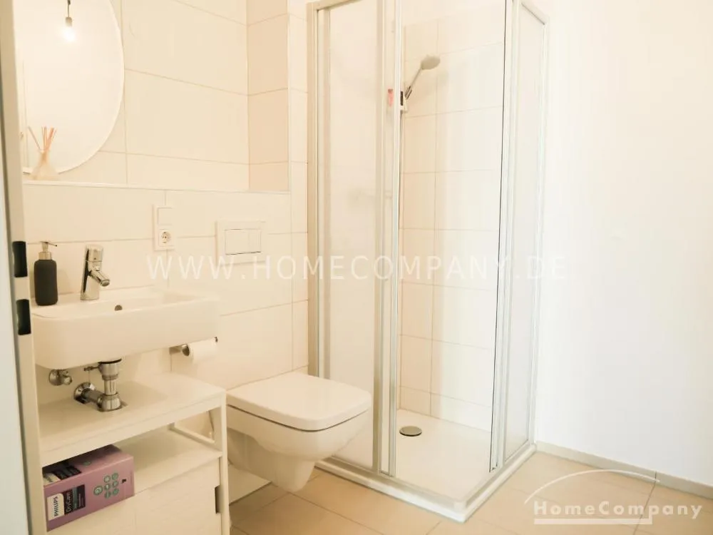 The apartment is located in the -Bürostadt -of Niederrad, directly near the Niederrad train station. Supermarkets such as Aldi, DM and Edeka are convenient located in the building complex.