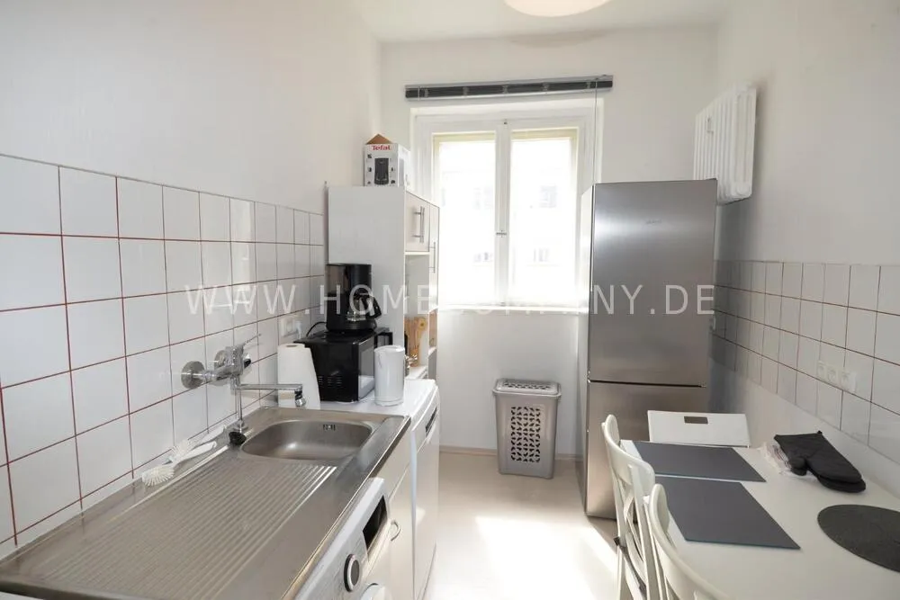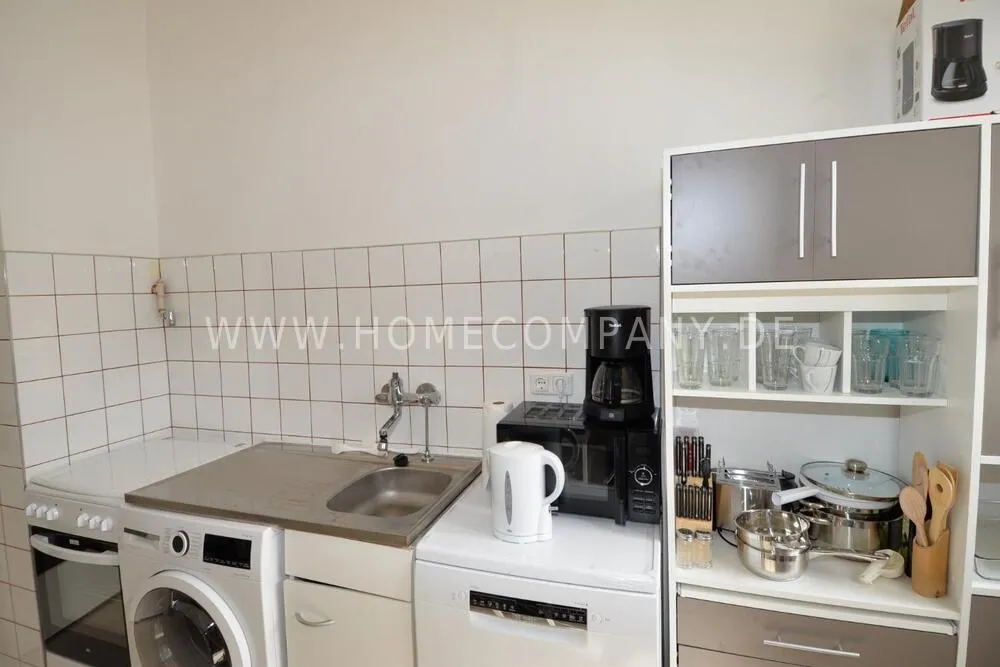 Furnished apartment in the beautiful location of Berlin Westend. Apartment offers a large and bright living room with a sleeping couch and a bedroom with double bed. Daylight bathroom with tub, fully eqipped kitchen complete with washing machine/dryer and dishwasher.
