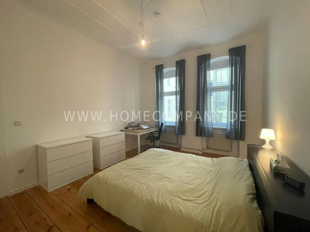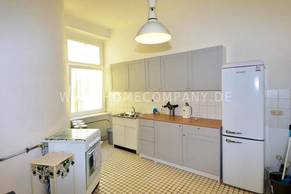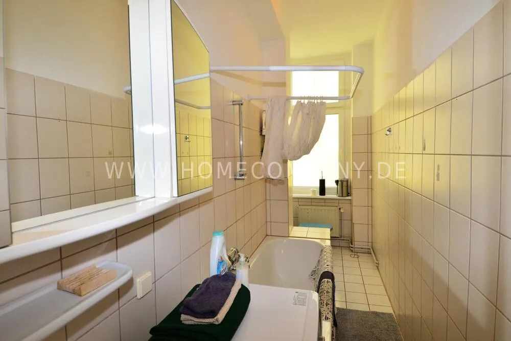 Simple but spacious furnished 2 room apartment in Prenzlauer Berg. The apartment has 75sqm and has a balcony. Spacious kitchen with dining table and window. Tiled daylight bathroom with bathtub. The bedroom offers a large double bed, wardrobe and a work desk. Countless shops (Edeka, dm market) and nightlife options within walking distance.